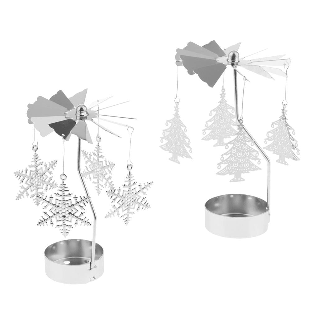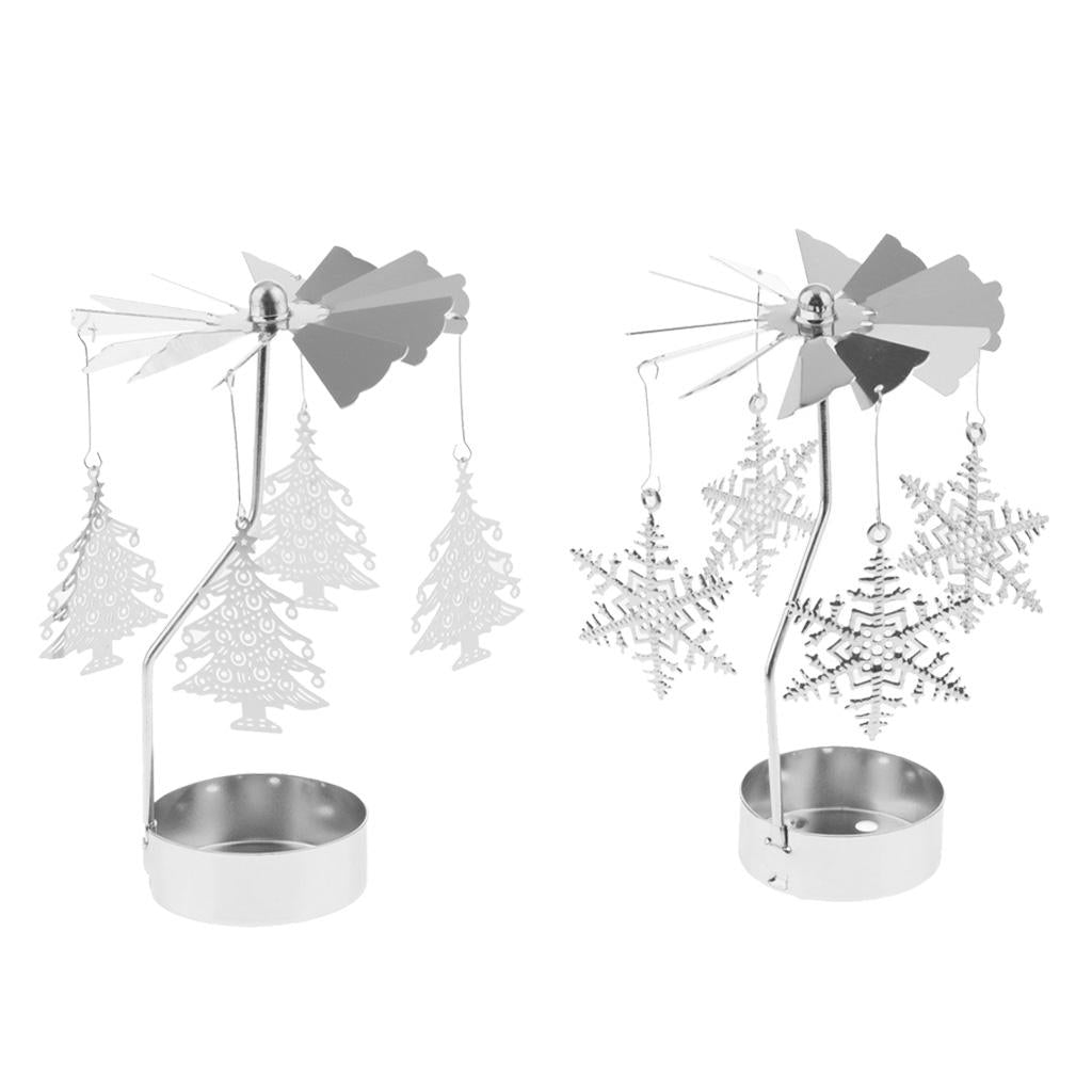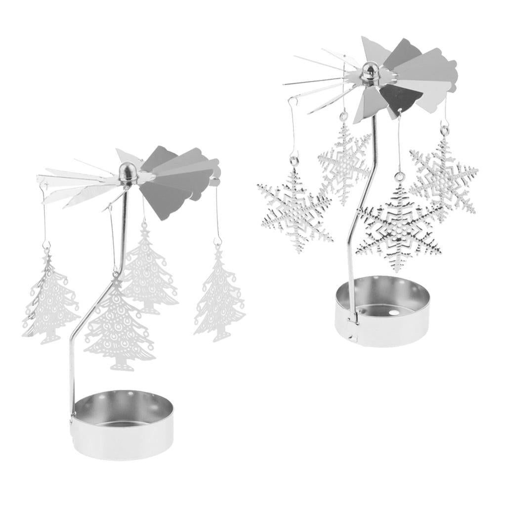 Maxbell 2pcs Christmas Rotating Candle Tea Light Holder Candlestick Snowflake/Tree