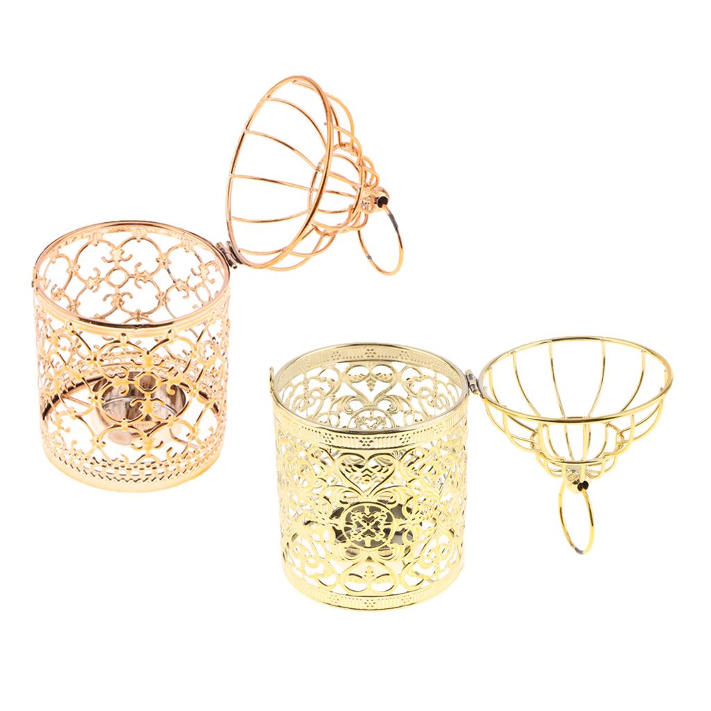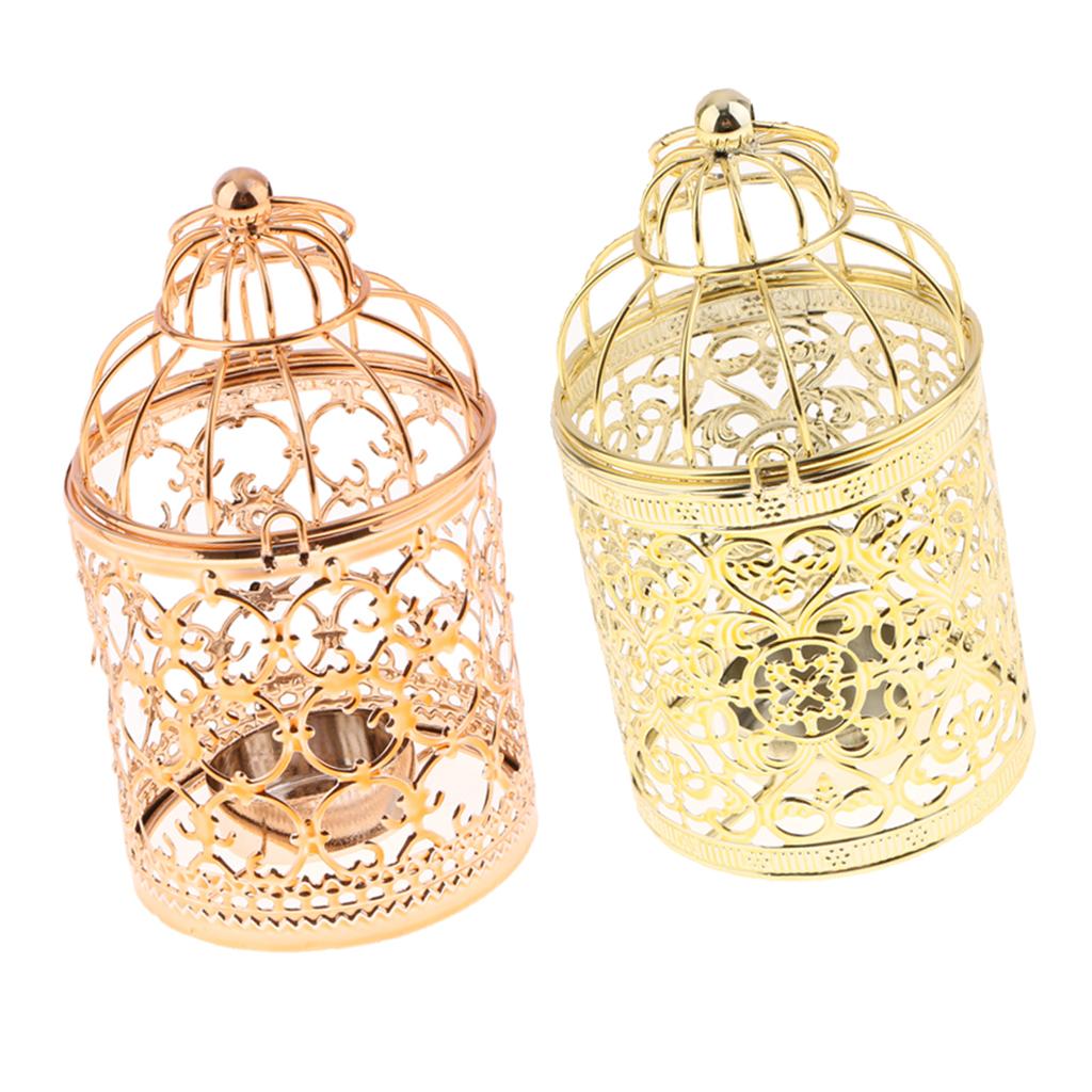 Maxbell 2pcs Electroplated Metal Birdcage Shape Tea Light Candle Holder Home Decor
