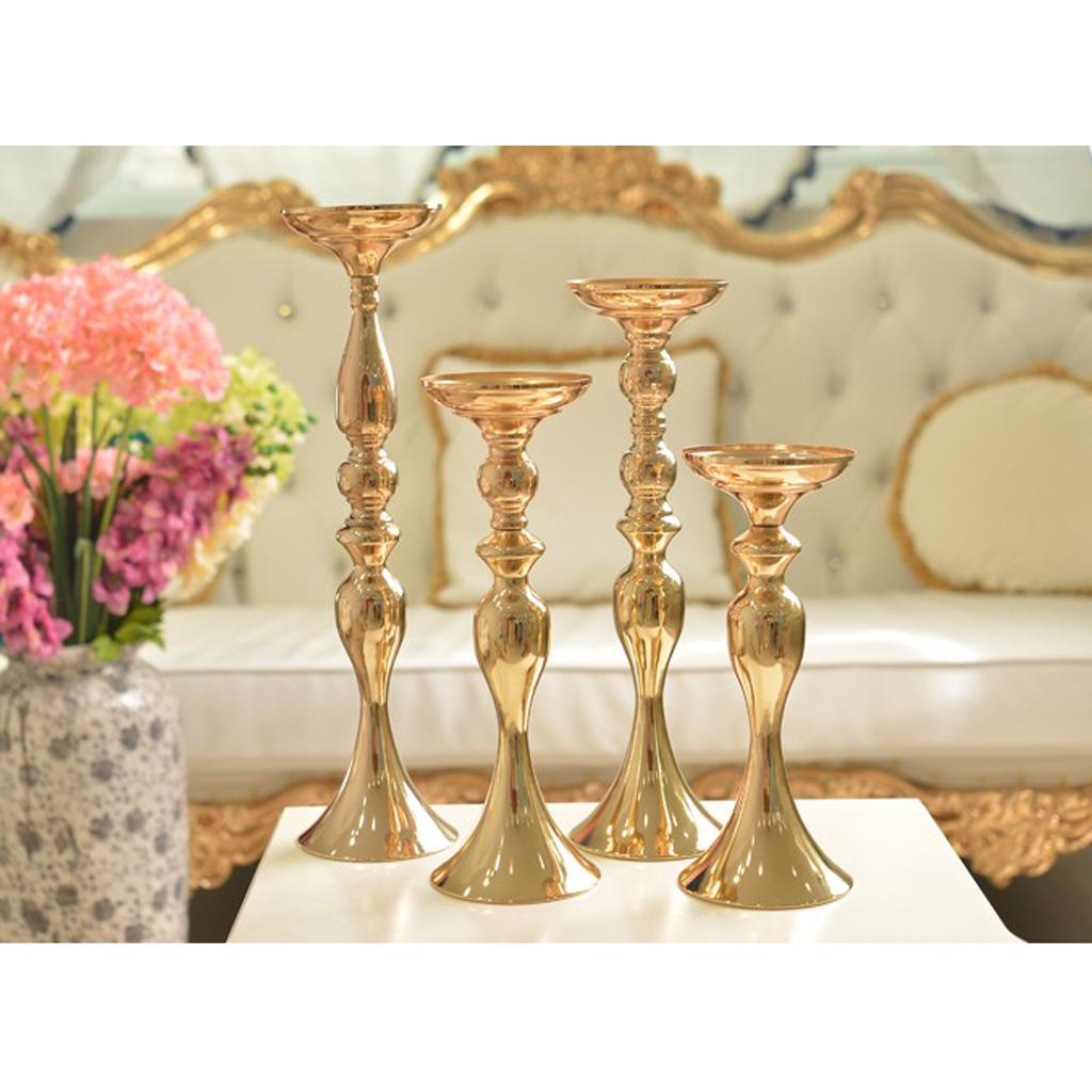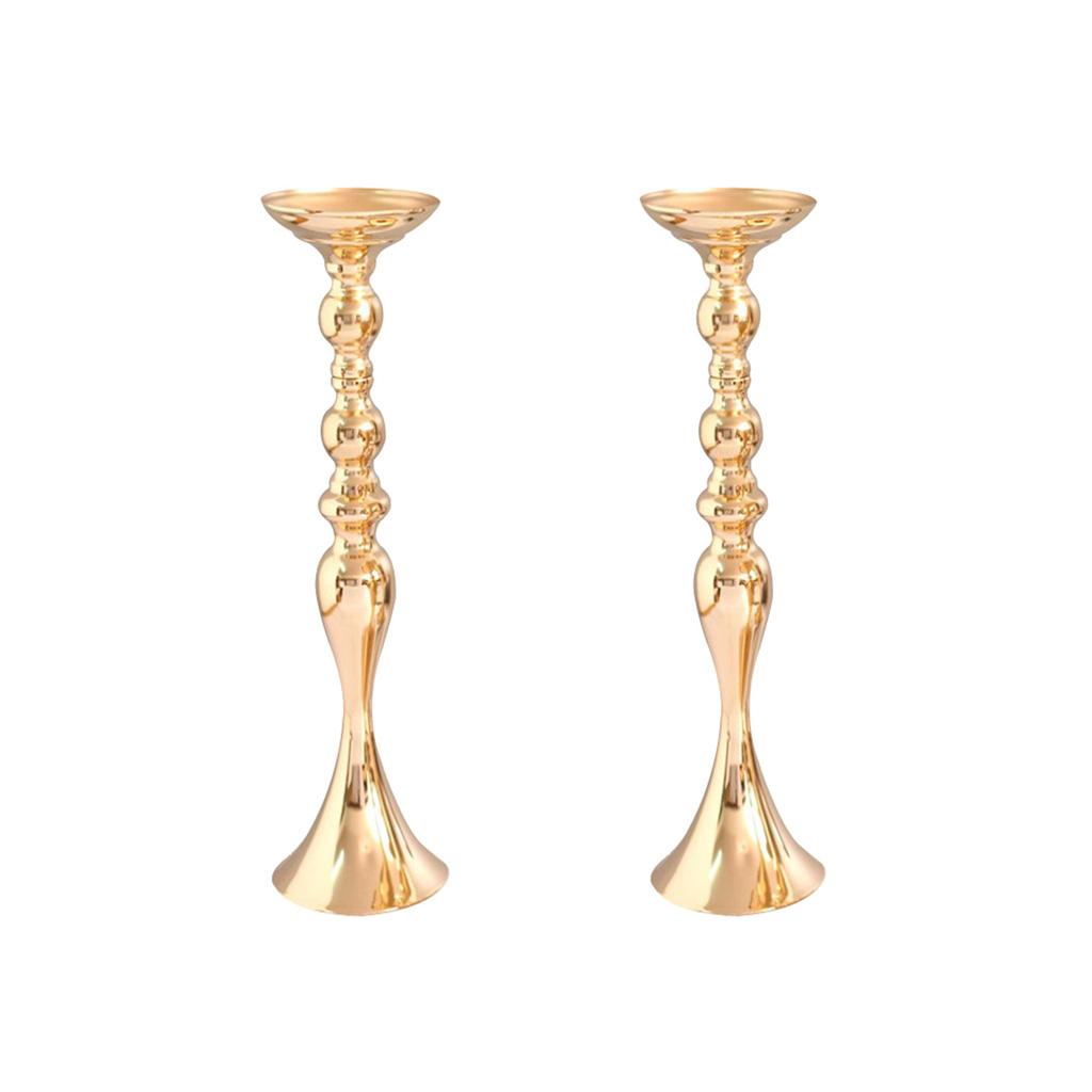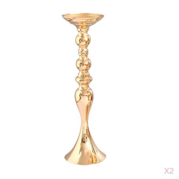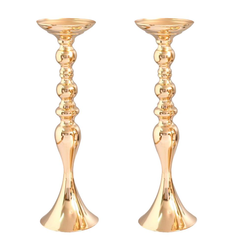 Maxbell 2pcs Long Stand Metal Candle Tea Light Holder Candlestick Flower Vase Gold-L