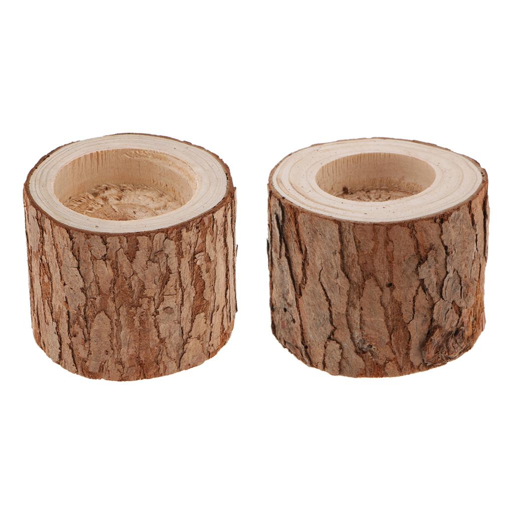 Maxbell 2pcs Tree Stump Candle Holder Wooden Tea Light Candlestick Decor 5cm & 6cm