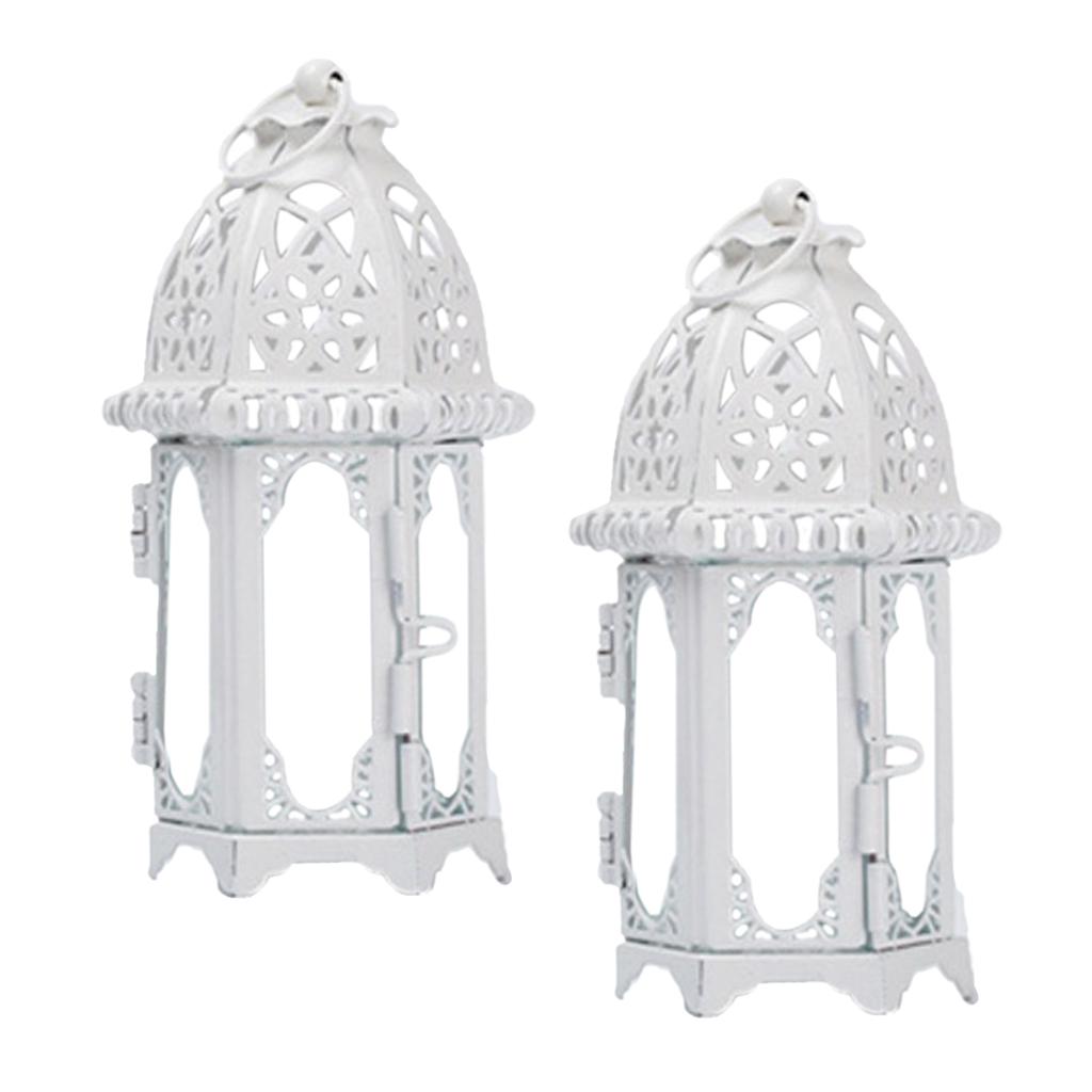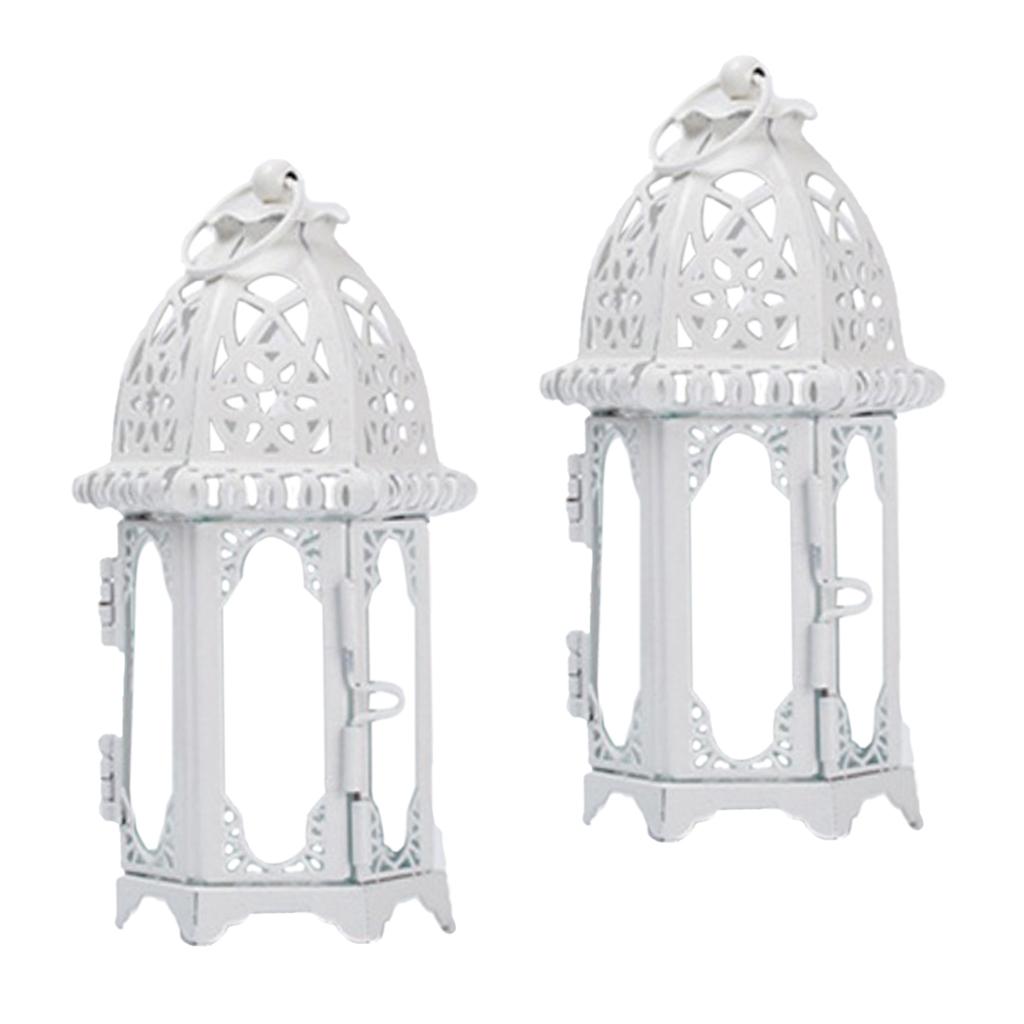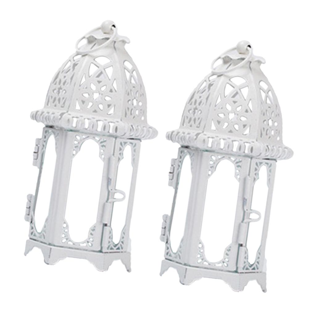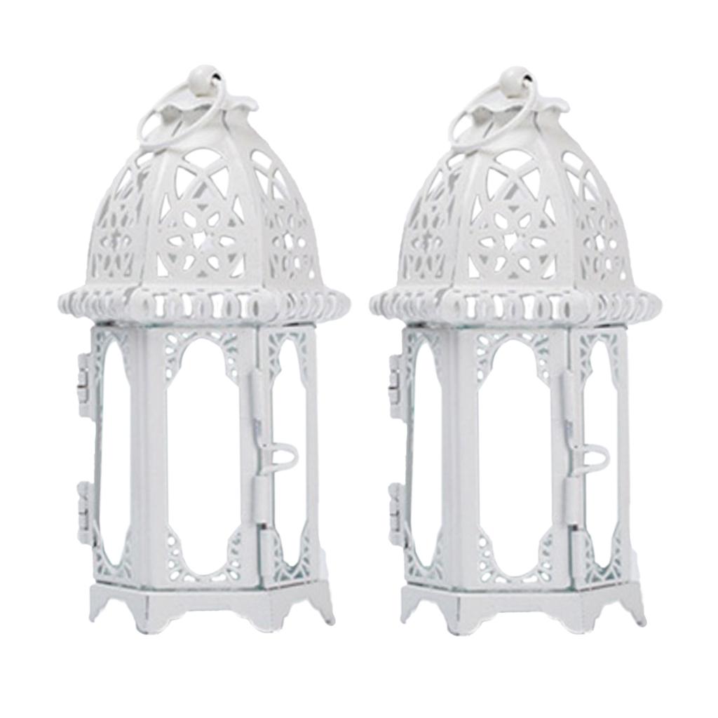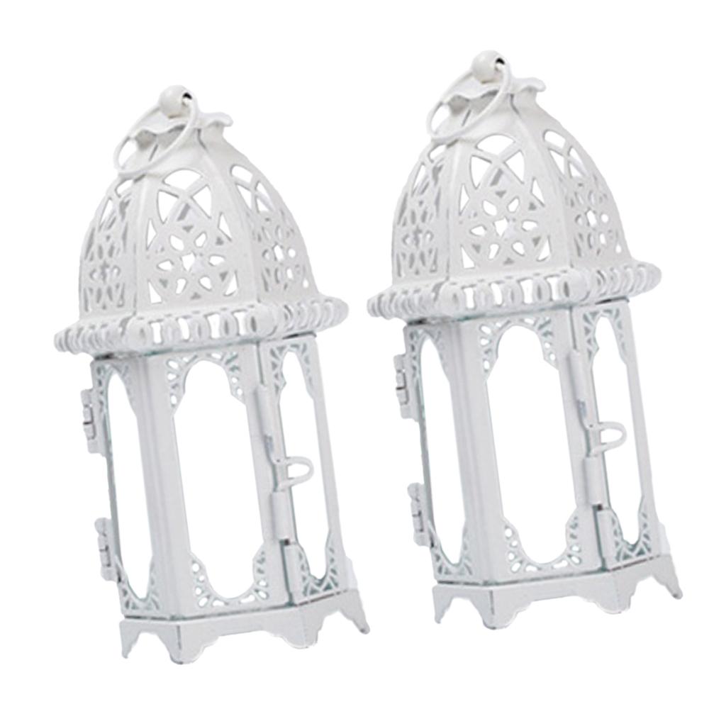Maxbell 2x Glass Tealight Candle Holder Wrought Iron Lantern Wedding Decorations