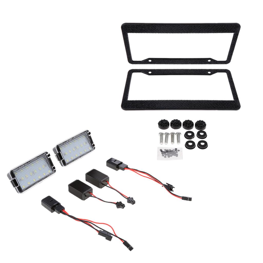 Maxbell 2x LED License Number Plate Light for Ibiza Leon + License Plate Frame Black