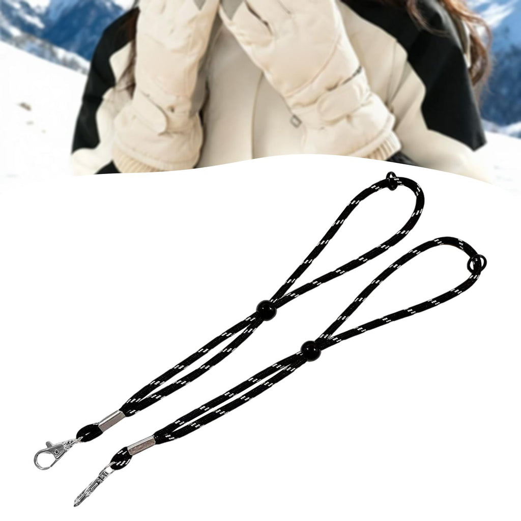 2x Ski Glove Leash Lightweight Professional for Winter Activities Adjustable Black 25cm
