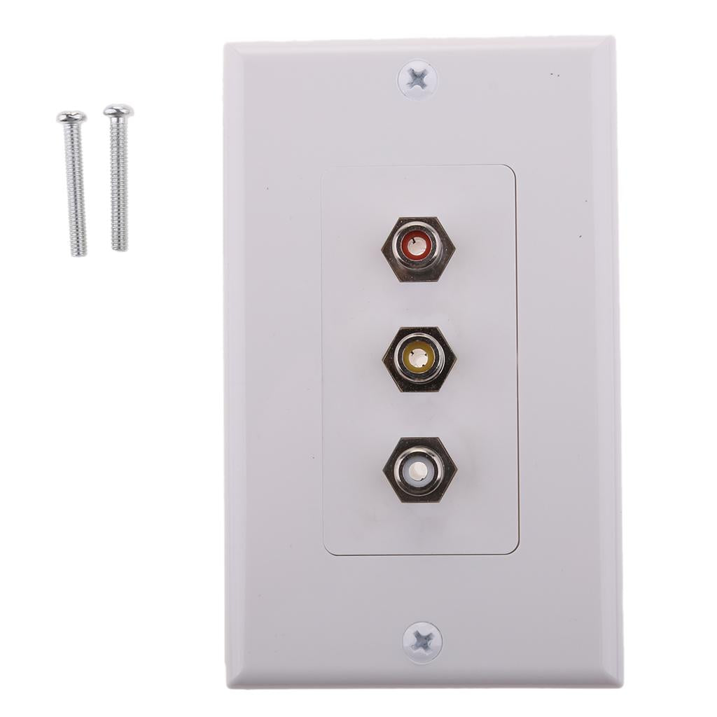Maxbell 2xCable Decoration Wall Plate Insert 3 RCA Couplers Female,Red/White/Yellow US