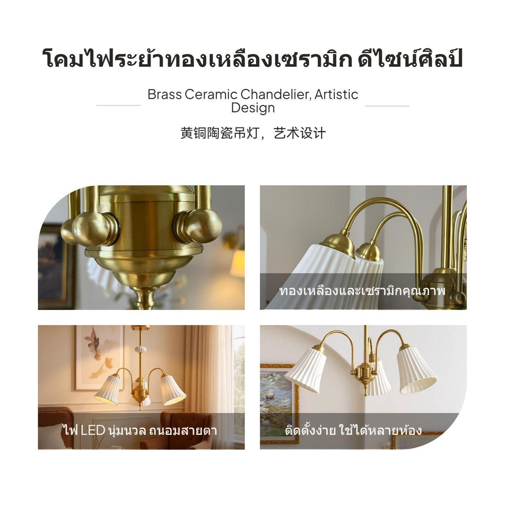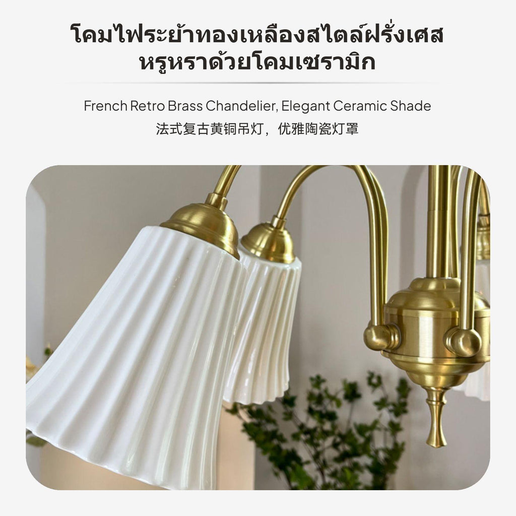 【โคมไฟแขวนเซรามิกวินเทจ 3 หัว】โคมไฟแขวนเซรามิกสีขาวสไตล์ฝรั่งเศส ผสมผสานดีไซน์วินเทจและวัสดุทองแดง เหมาะสำหรับห้องนอน ห้องรับแขก หรือร้านอาหาร เพิ่มบรรยากาศอบอุ่นและหรูหราให้กับทุกพื้นที่.【วัสดุคุณภาพสูงและทนทาน】ตัวโคมทำจากทองแดงและเหล็กคุณภาพสูง พร้อมฝาครอบเซรามิกสีขาว ให้ความรู้สึกคลาสสิกและทนทานต่อการใช้งานระยะยาว.【แสง light-emitting diode สามสี ปรับเปลี่ยนบรรยากาศ】มาพร้อมหลอดไฟ light-emitting diode E27 สามสี สามารถเปลี่ยนโทนแสงได้ตามต้องการ เหมาะกับทุกโอกาสและบรรยากาศในบ้าน.【ติดตั้งง่ายและปรับความสูงได้】ดีไซน์แขวนและติดเพดานได้ในตัว สามารถปรับความยาวของก้านแขวนให้เหมาะกับความสูงของห้องได้อย่างยืดหยุ่น.【เหมาะกับหลายพื้นที่】เหมาะสำหรับห้องนอน ห้องรับแขก ร้านอาหาร หรือบาร์ โคมไฟแขวนเซรามิกนี้ช่วยเติมเต็มความรู้สึกวินเทจและความอบอุ่นให้กับทุกพื้นที่.Specification: