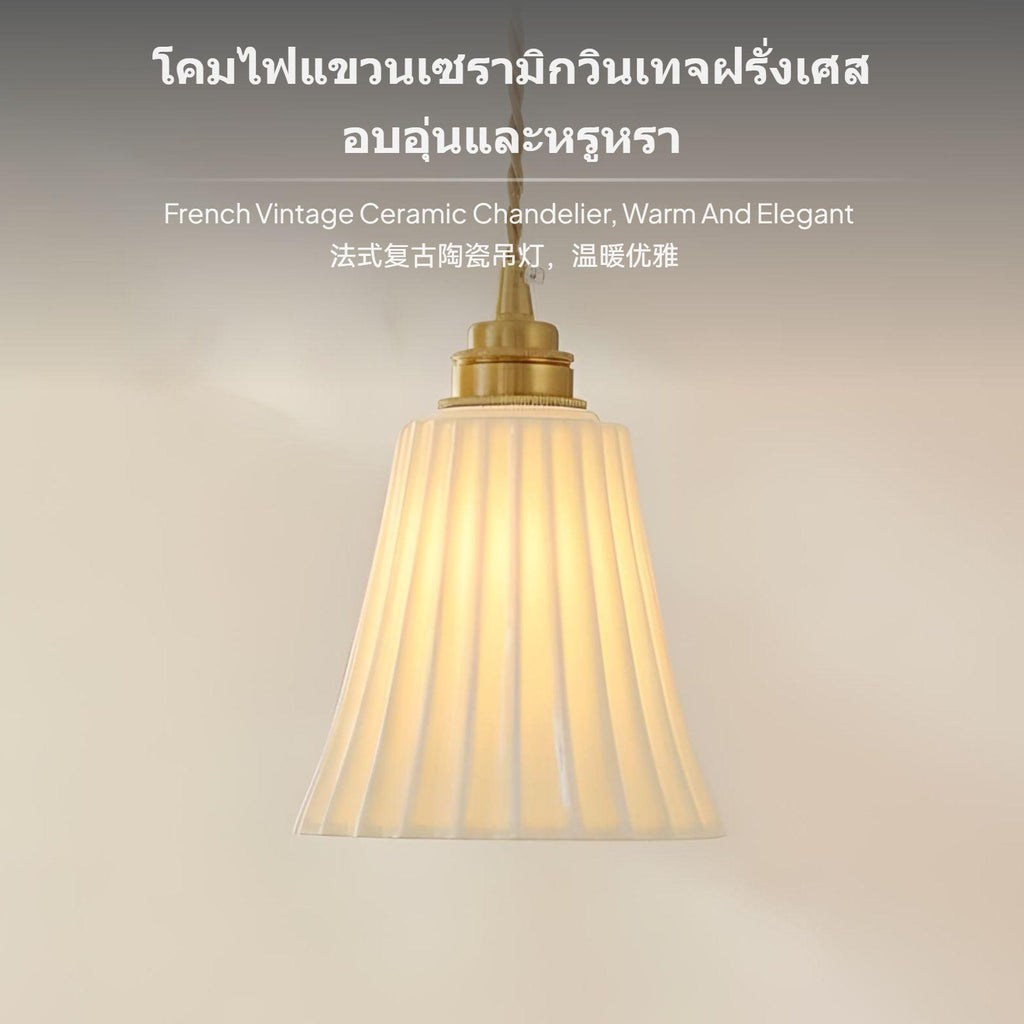 3 โคมไฟแขวนเซรามิกสไตล์วินเทจฝรั่งเศส สีขาว ทองแดง สำหรับห้องนอน ห้องรับแขก ร้านอาหาร light-emitting diode E27 Iron 1 Head
