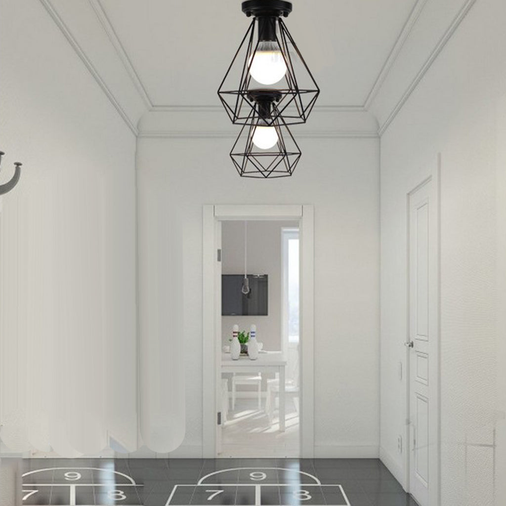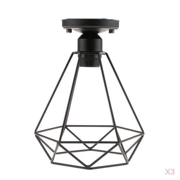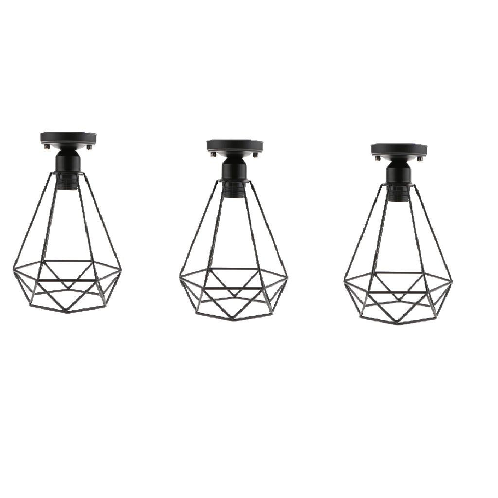 Maxbell 3 pcs Vintage Wire Diamond Loft Pendant Ceiling Light Lamp Cage Shade