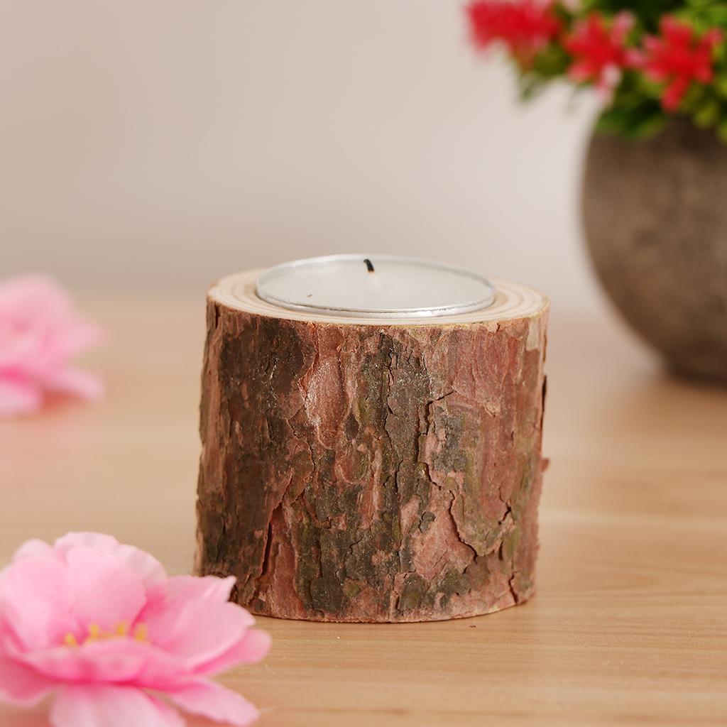 Natural wooden tree stump candle holder, unique appearance creates a romantic and elegant ambience.