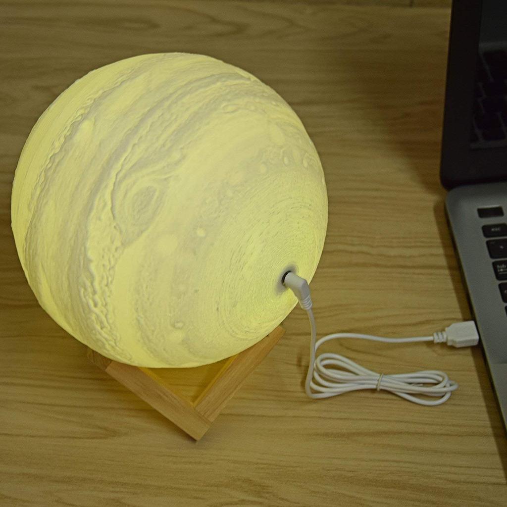 Moon lamp with the build-in rechargeable battery, can charge on your computer/power bank or charge adaptor etc. No line hanging around, you can hold the moon light on your hand.