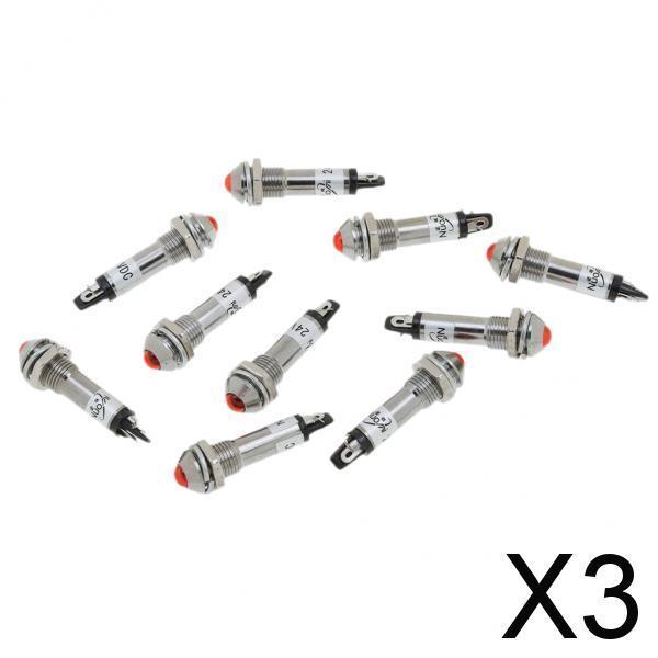 Maxbell 3x10pcs 8mm 24V Red LED Metal Indicator Light XD8-2