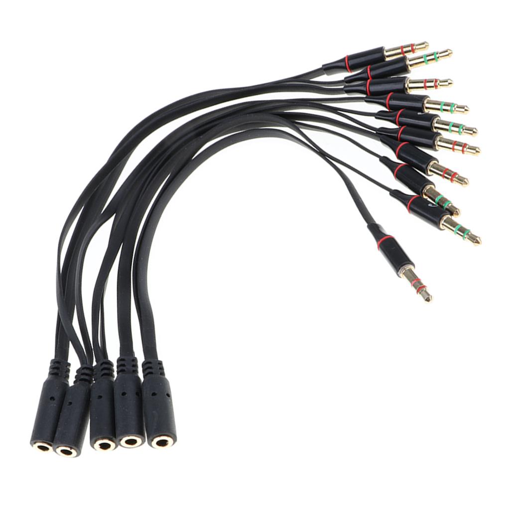 Maxbell 3x5 Pieces Audio Headphone Mic Splitter Cable 3.5mm Female to 2 Dual Male