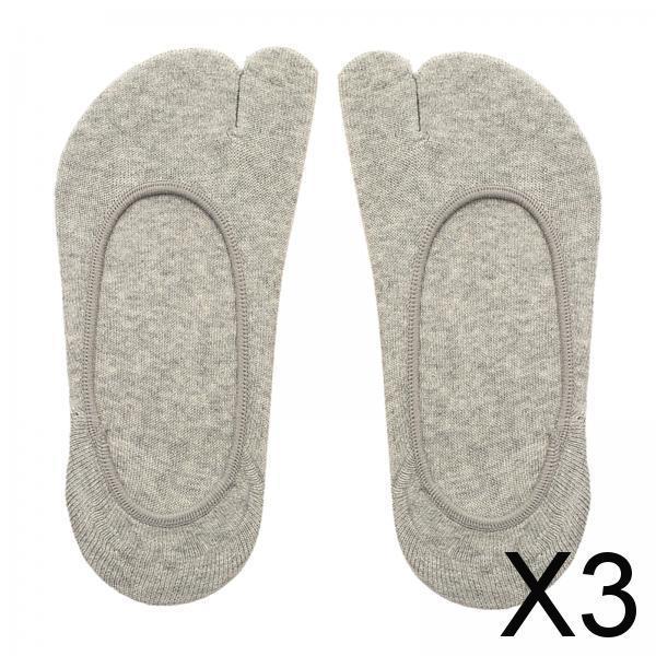 Maxbell 3xWomen 2 Toe Flip Flop Socks Women No Show Toe Socks for Loafer Shoes Sneaker Light Gray