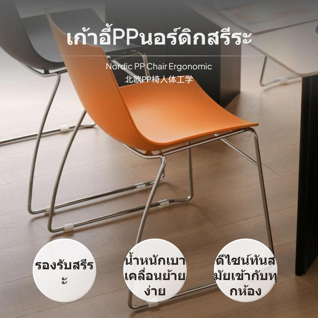[adaptable Stackable Design] Set of 4 ergonomic dining chairs crafted from safe polymeric material and supported by a dependable metal frame, perfectly blends minimalist modern aesthetic with Nordic elegance for any home, office, or commercial meeting space.[Comfortable Seating comfort] Chair features a curved spinerest and contoured seat for effective spine relaxation and lower torso support, making it suitable for long periods of sitting during dining, business negotiations, and leisure activities.[Practical & Space-Saving] Armless and paddingcushionless construction ensures easy cleaning, while the stackable design offers convenient storage and optimal space utilization in kitchens, conference rooms, and cafes.[easy installation Color Variety] Comes preparedto-use without assembly and available in four stylish hues – ivory, orange, black, and light gray – to match various decorative styles and environments. hues shipped as requested.[Modern & High Value] Combining a contemporary look with practical features, this chair set is designed for strong usability and attractive value, fitting beautifully in homes, business lounges, training rooms, and reception areas. Minimum order: 4 chairs. Please note: color selection as per customer preference.