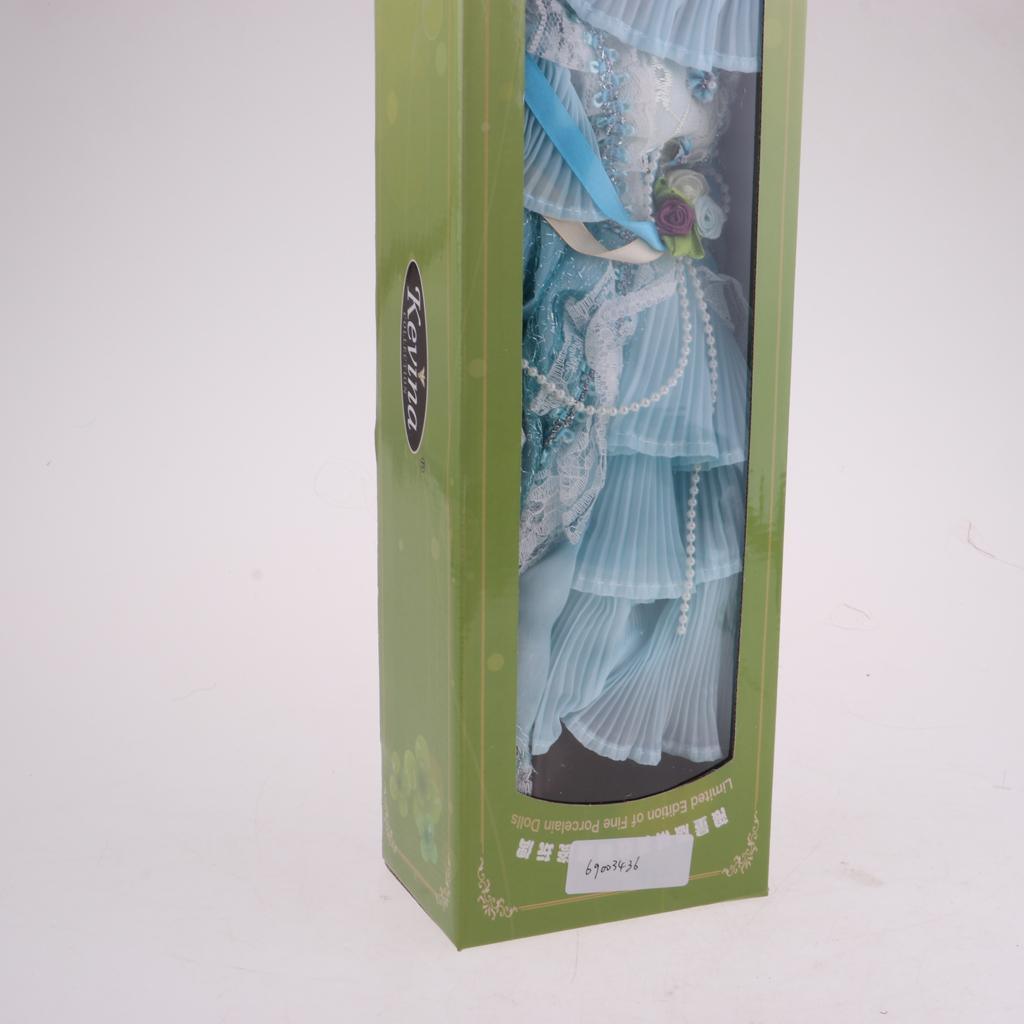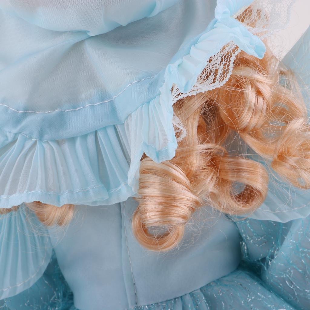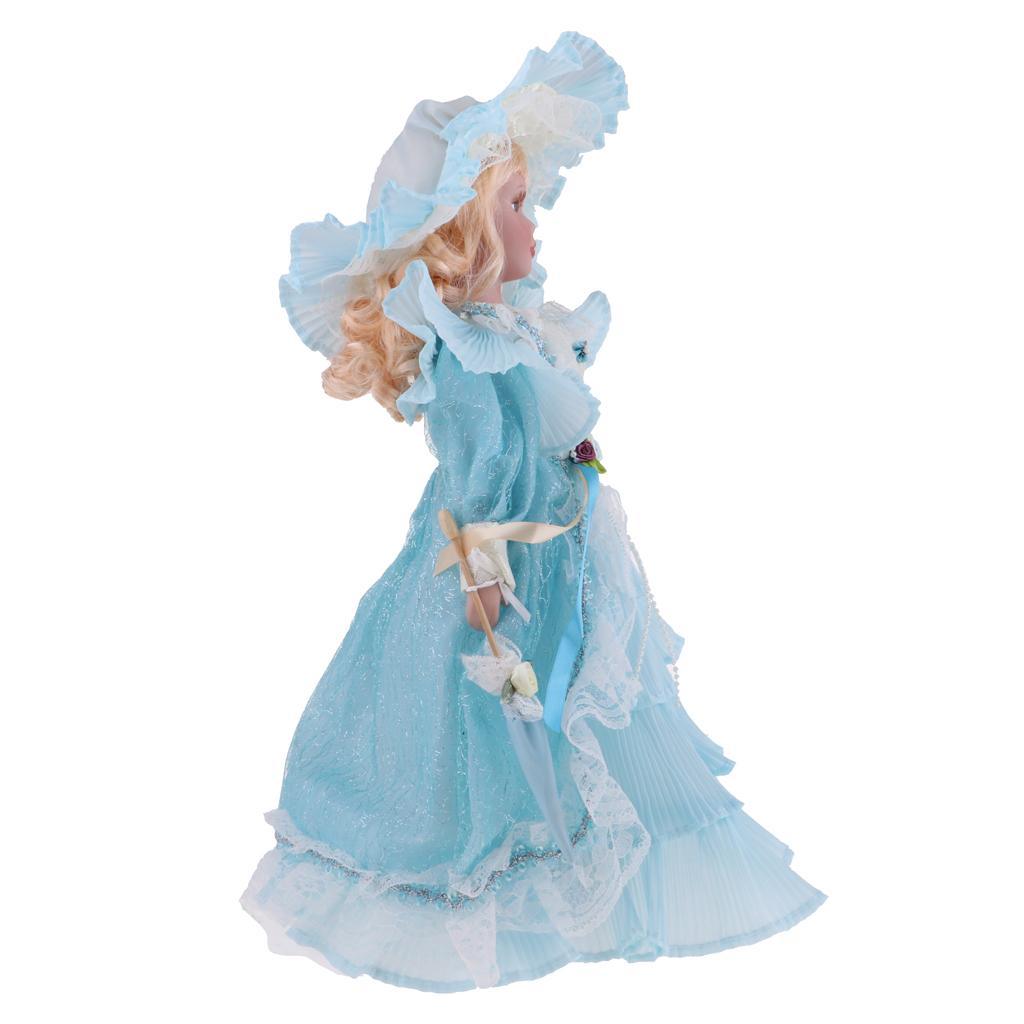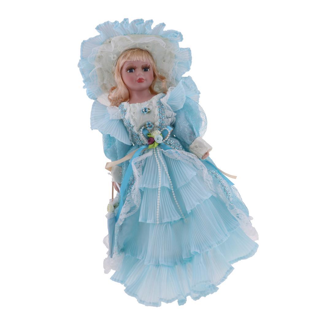 Maxbell 40cm Victorian Porcelain Girl Doll People Figure with Dress Light Blue Gift