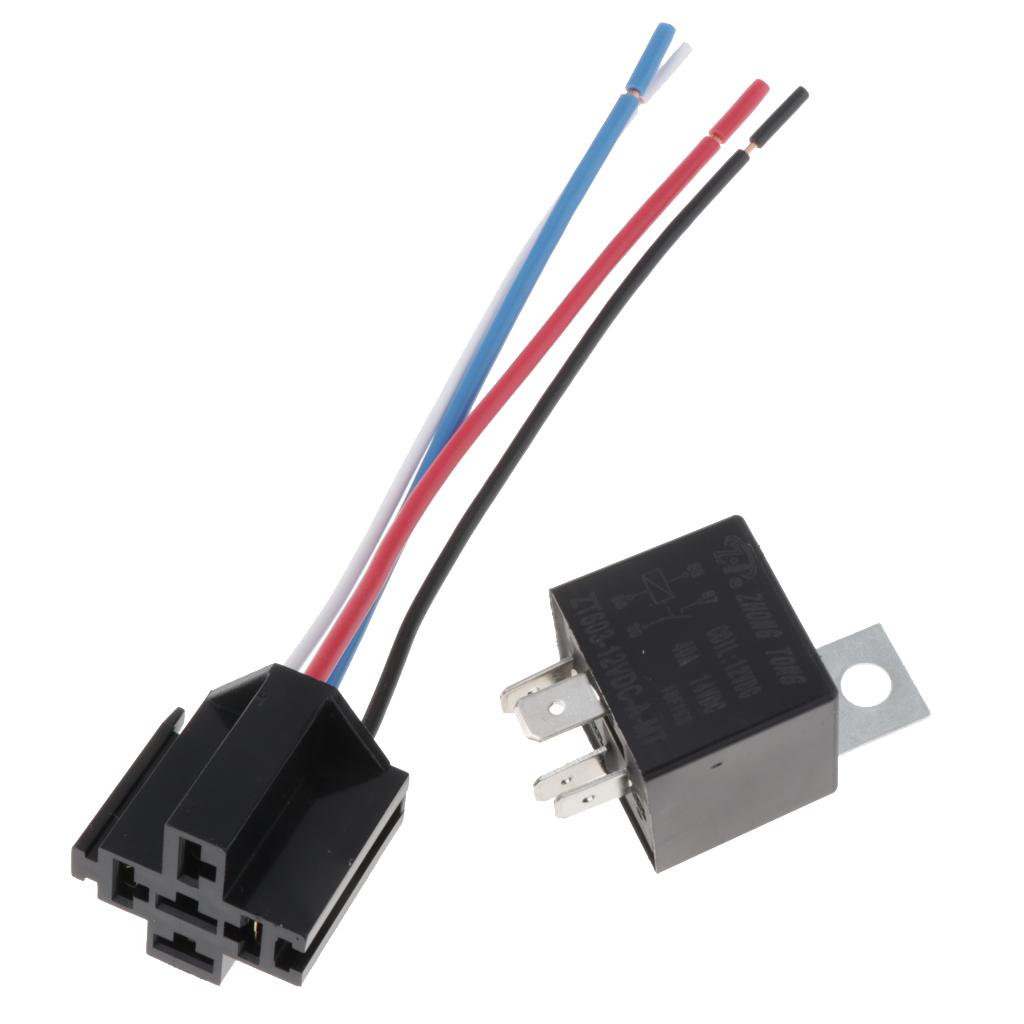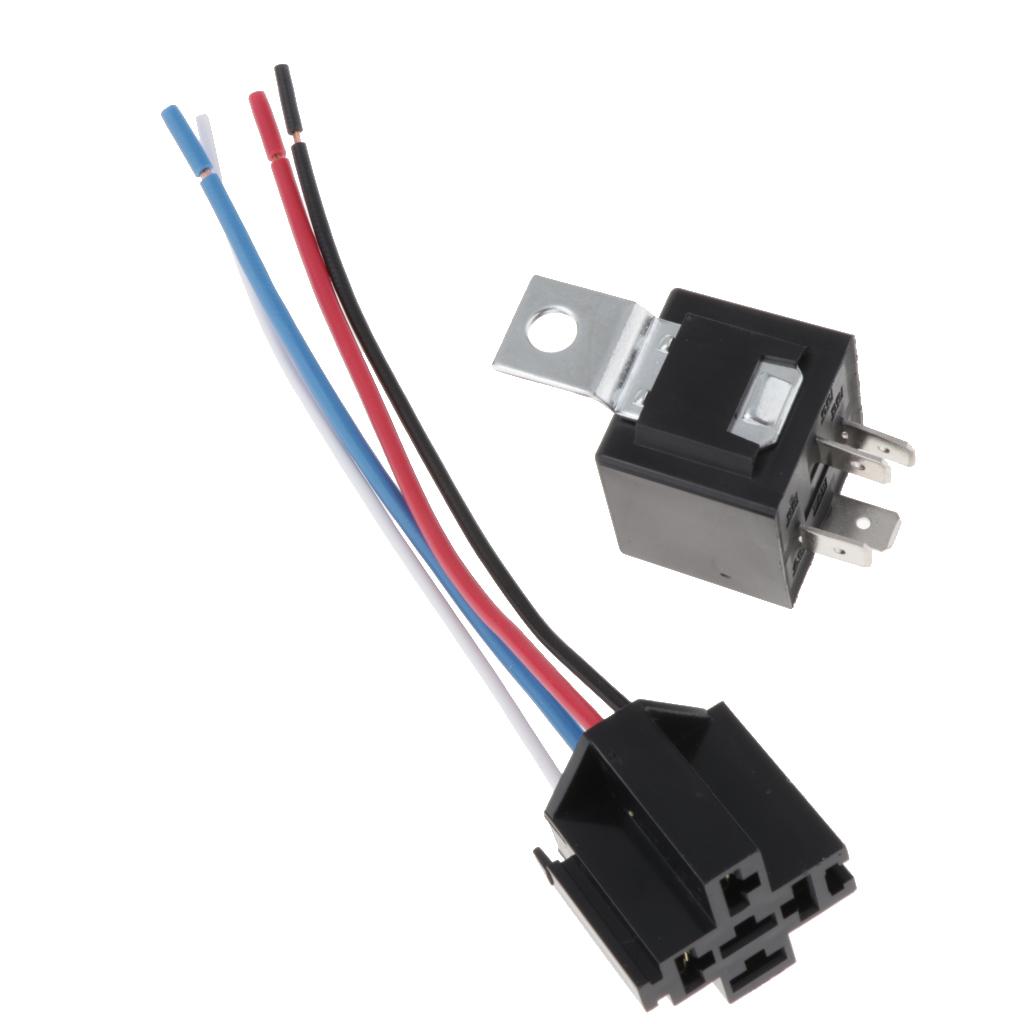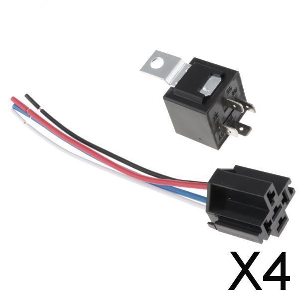 Maxbell 4x40A 4-Pin Relay Socket Harness Connector for Car Truck + Harness Sockets