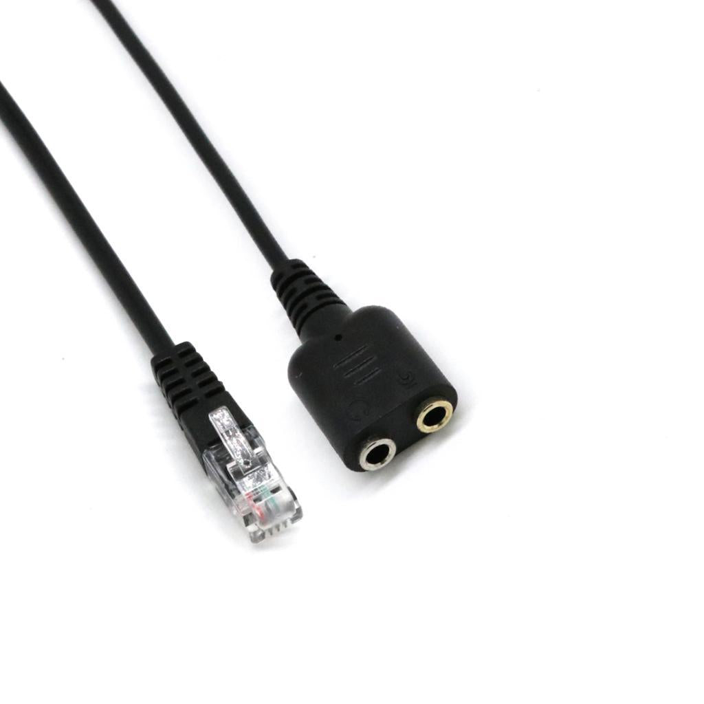 Connector A: 2x 3.5mm female ,Connector B: RJ9 male; Length:25cm.2 slots - for micophone and for headset.