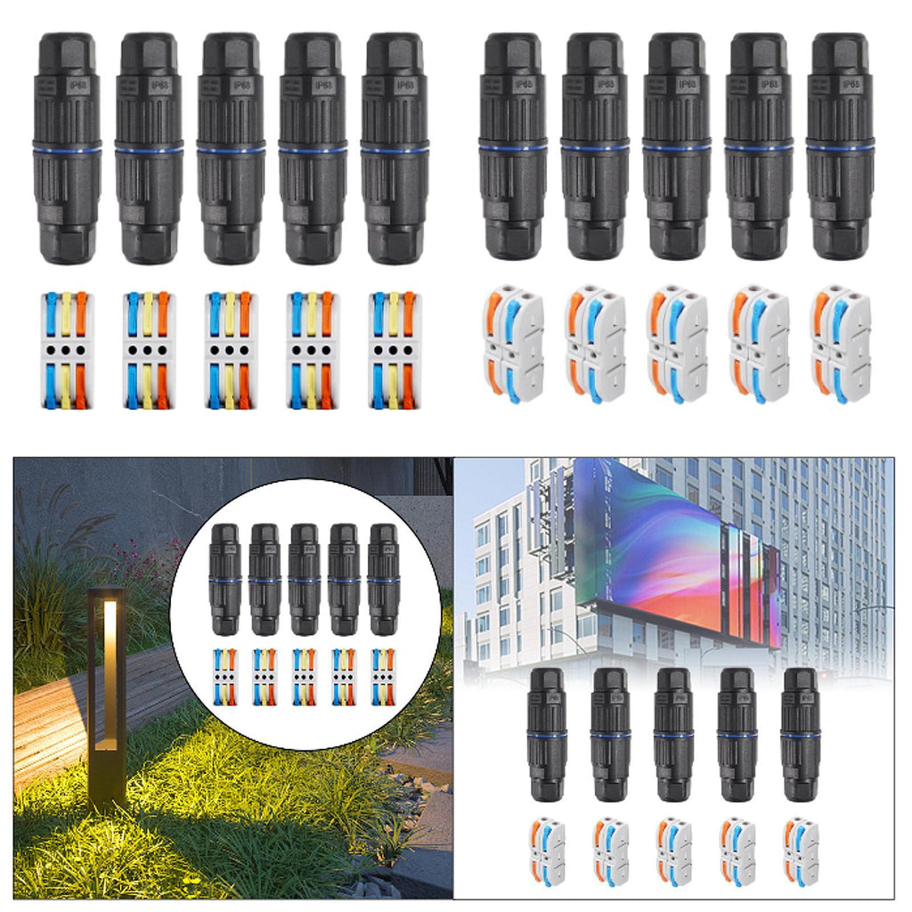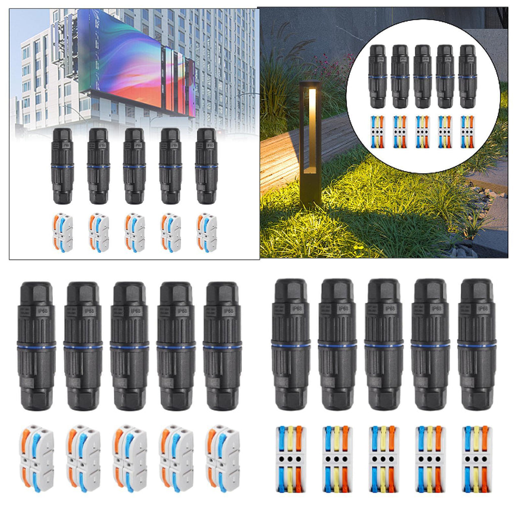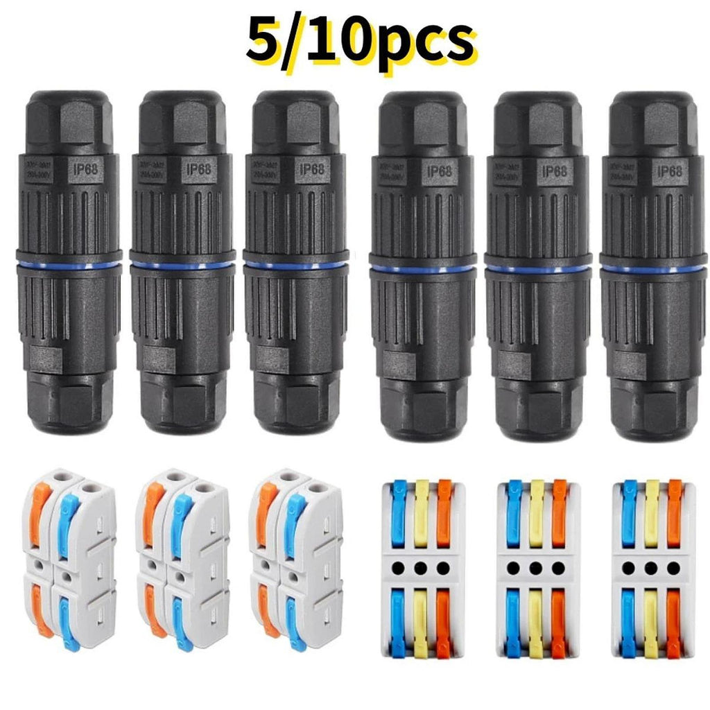 【Enhanced IP68 Waterproof Design】: This outdoor wiring connector features a quality PC shell, silicone sealing ring, and nylon elastic wiring port. It is upgraded to be waterproof, fireproof, dustproof, and impact resistant, making it suitable for use in both sunny and rainy conditions