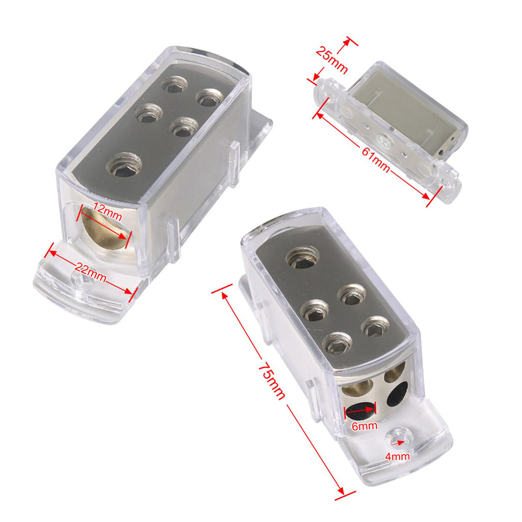 Maxbell 5x4-Way 1X 4AWG In 4X 8AWG Out Power/Ground Cable Splitter Distribution Block