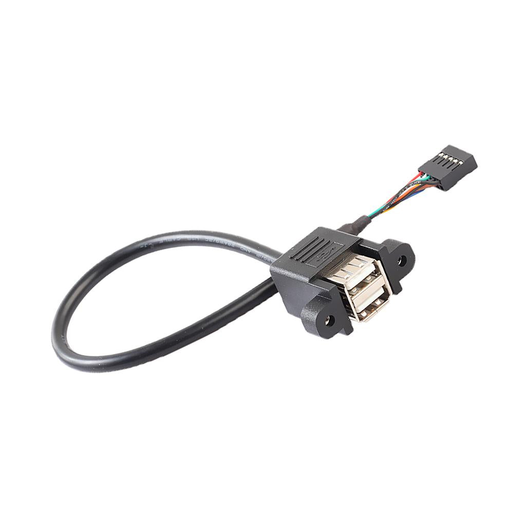 Dual USB 2.0 A Type Female to Motherboard 9 Pin Header Cable with Screw Panel Holes