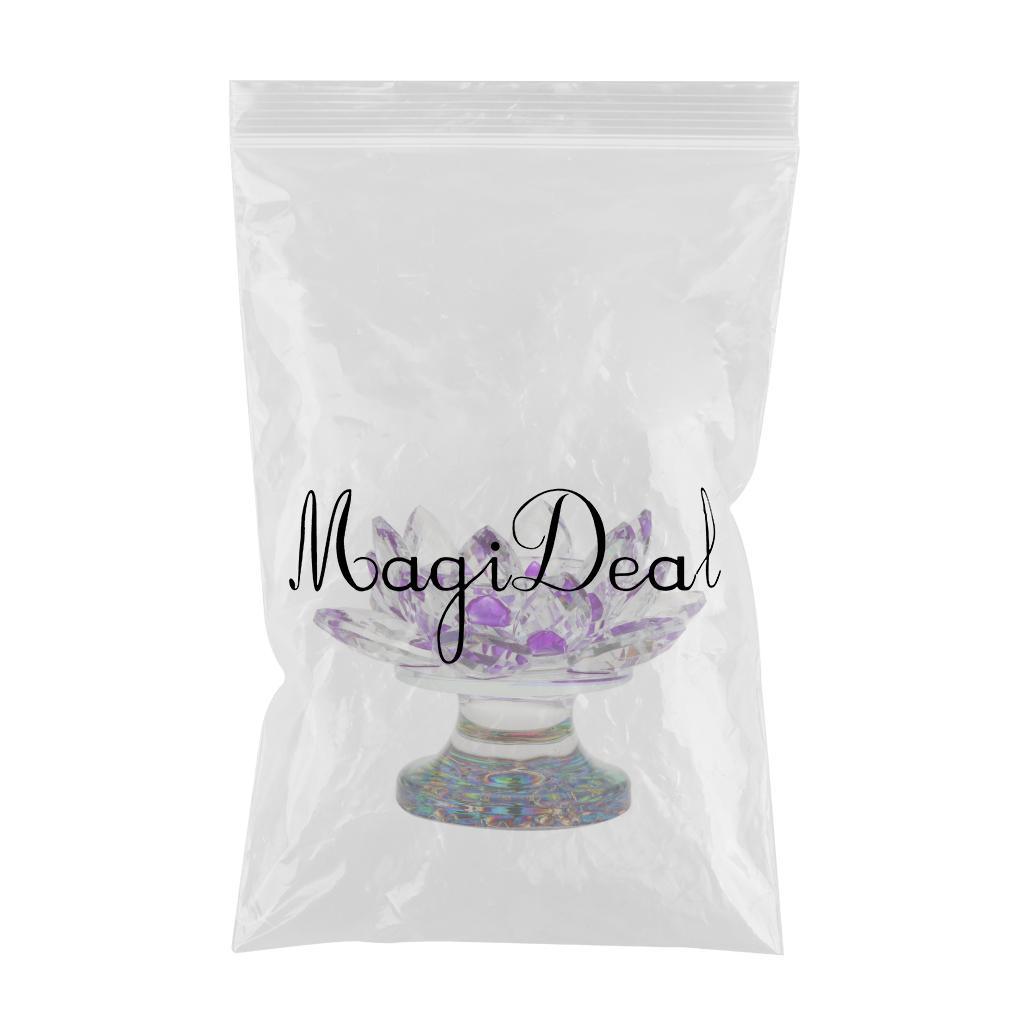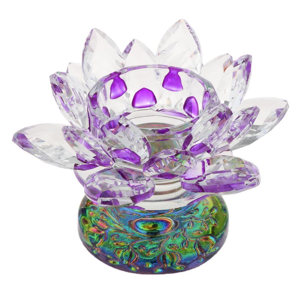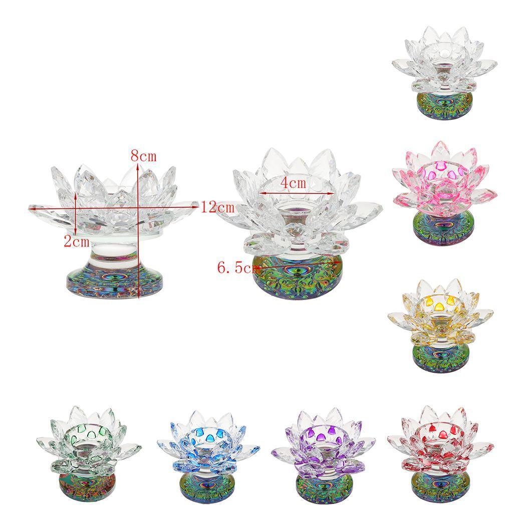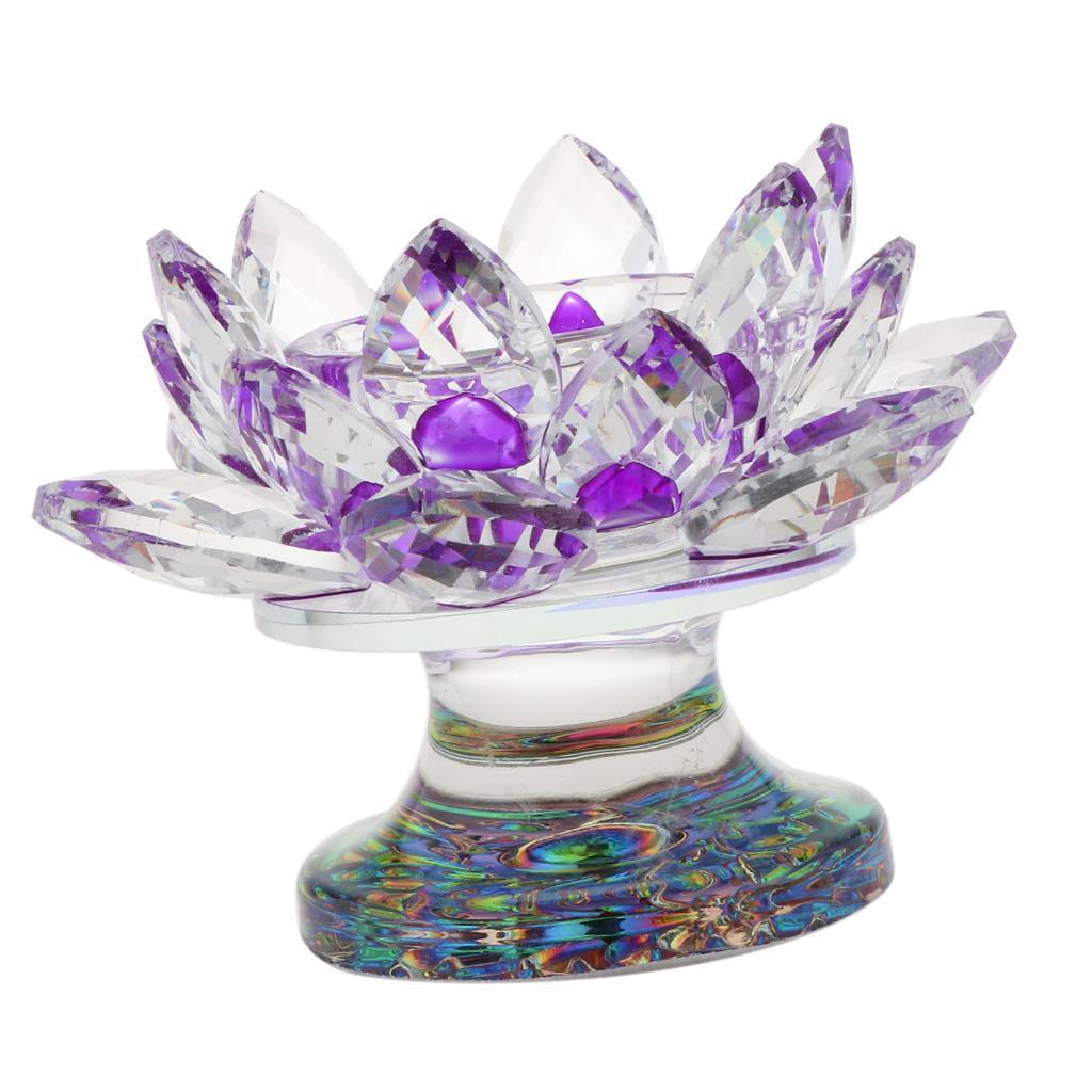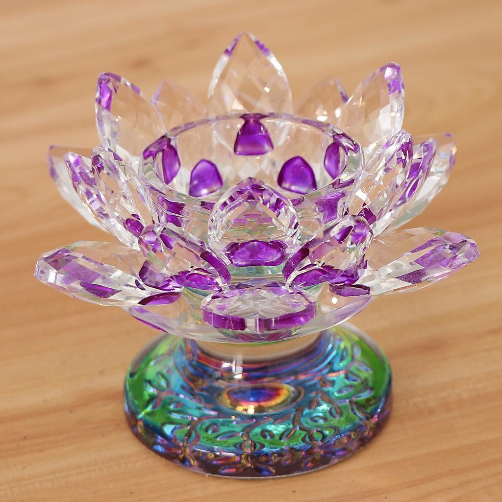 Max 7 Colors Buddhist Crystal Glass Tea Light Lotus Flower Candle Holder Purple