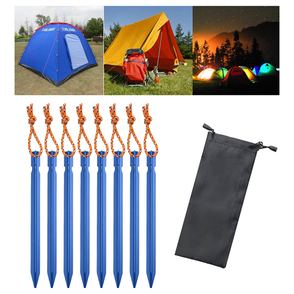 Maxbell 8Pcs Tent Stakes Lightweight Metal Stakes for Ground for Desert Outdoor Trip Blue