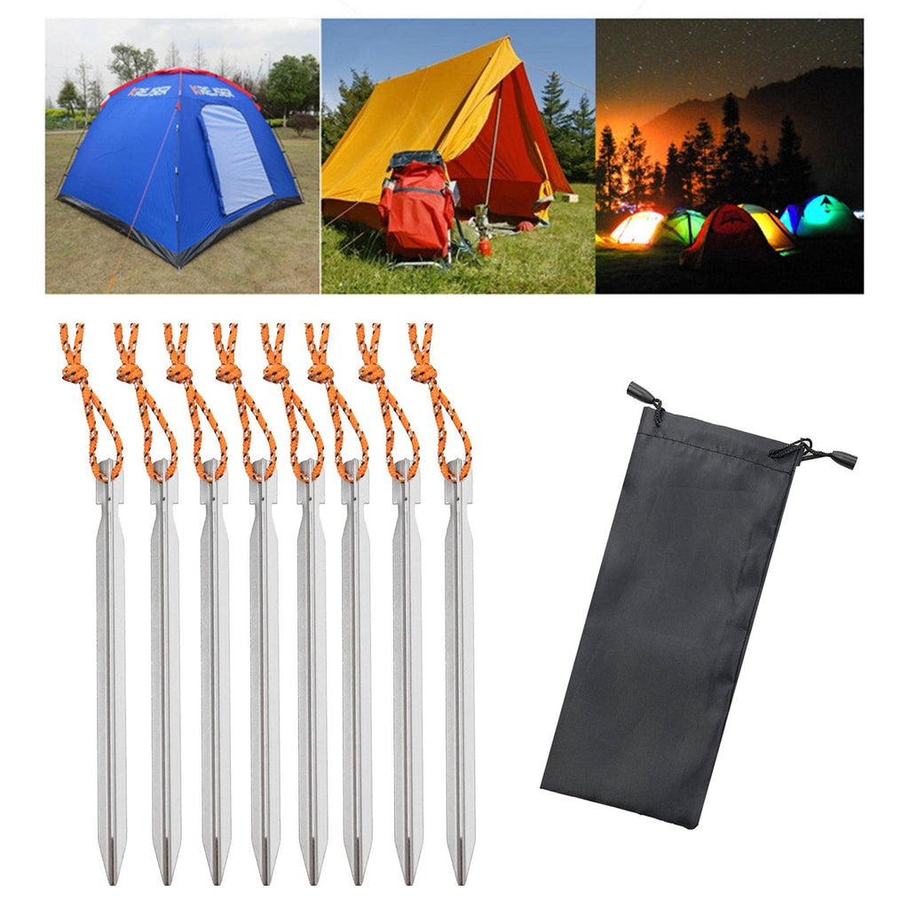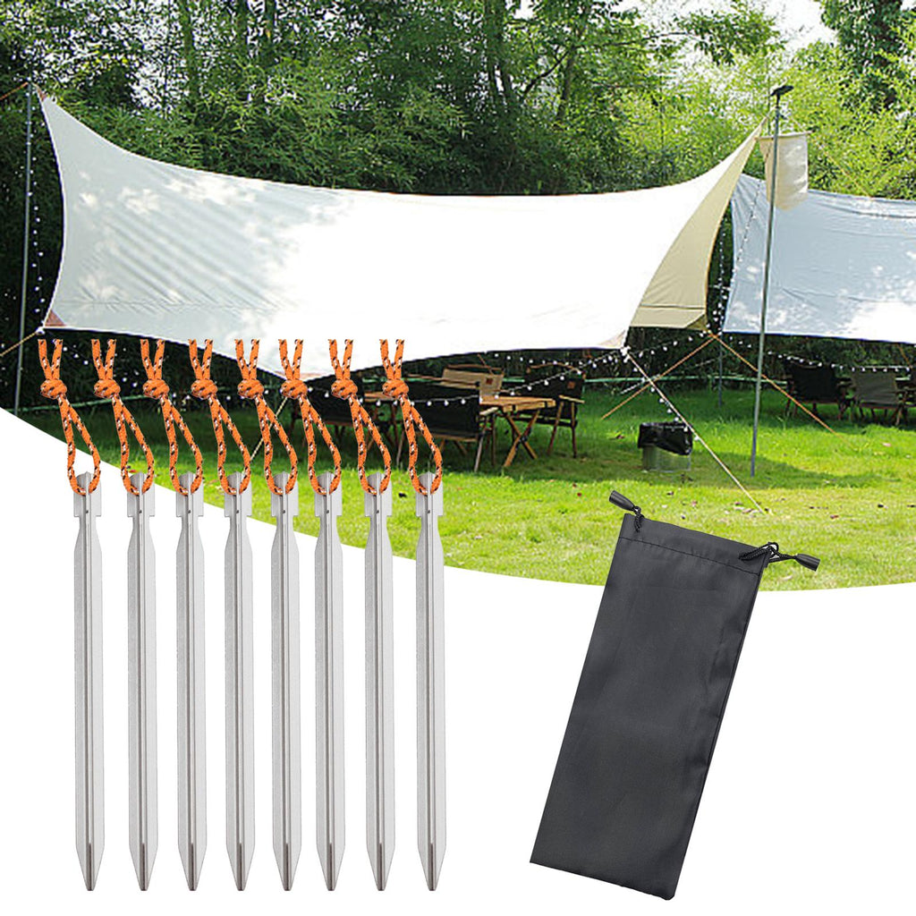 Maxbell 8Pcs Tent Stakes Lightweight Metal Stakes for Ground for Desert Outdoor Trip Silver