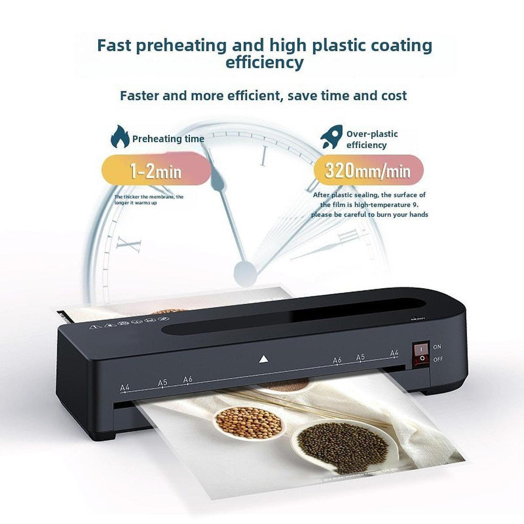 【Fitment】: This multifunctional laminator accommodates various sizes including A4, A5, and A6 formats, 12.60inchx3.94inchx2.44inch in size