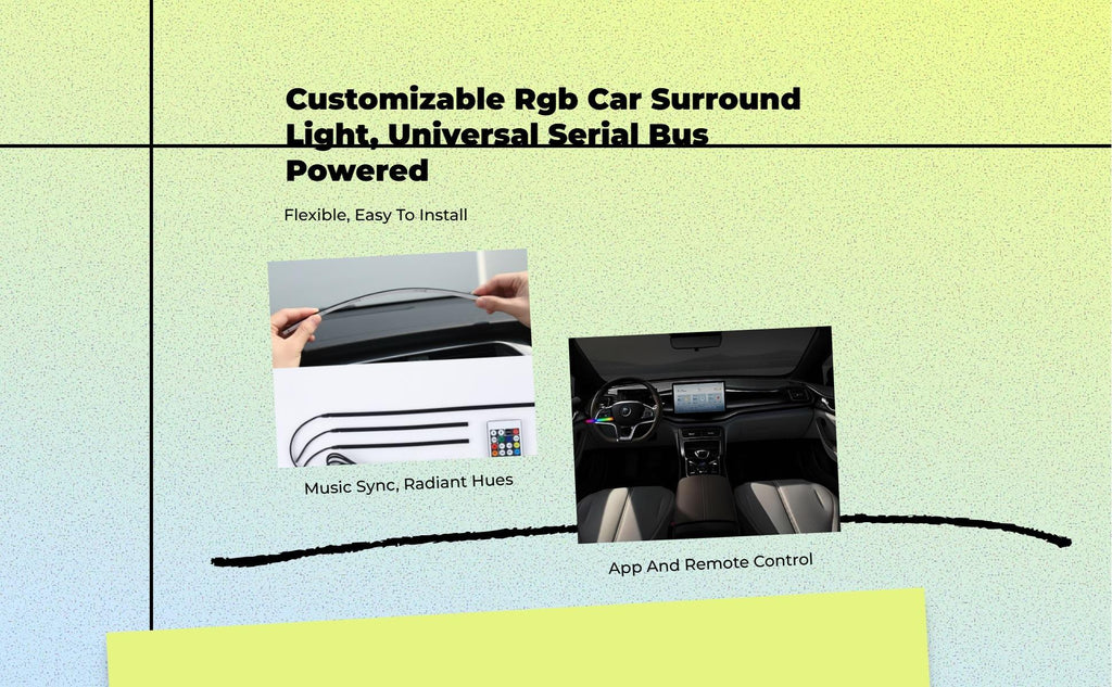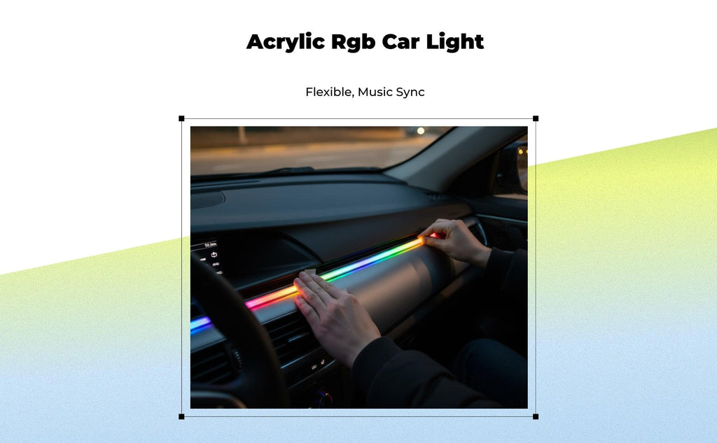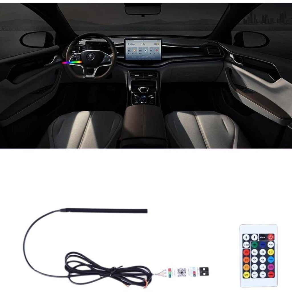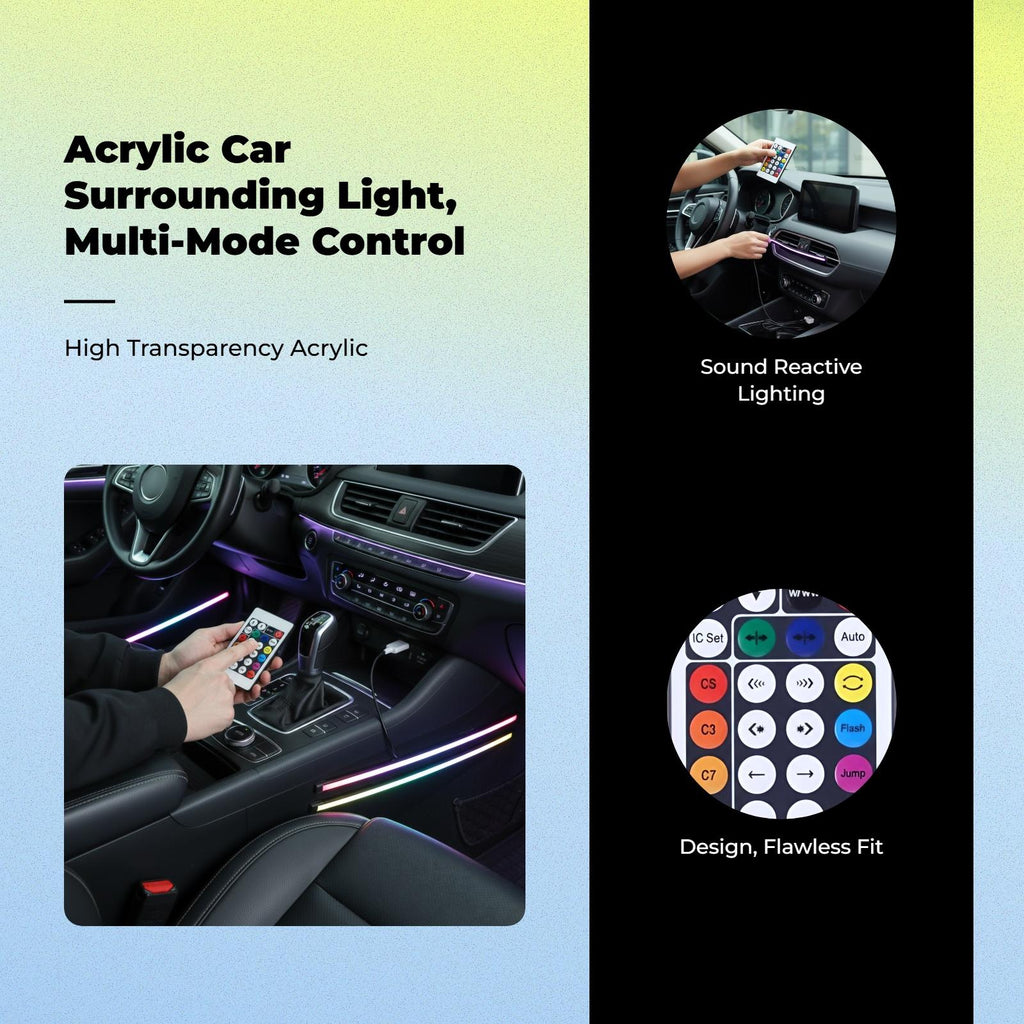 Acrylic Car Ambient Light, RGB, Music Sync】enhance your car’s interior with lively RGB ambient lighting, featuring sound-activated technology that creates a dynamic light show synchronized with your music. [port-powered Powered, Easy Installation】Powered by port-powered, this acrylic light strip is simple to install and accommodates most car interiors, offering effortless decorative enhancement without the need for rewiring. [Sound-Activated & App Control】Enjoy smart app control and sound-activated pulsing to create an immersive atmosphere for driving, parties, or gatherings. [High-Quality resilient Material】Crafted from exactmolded acrylic, this strip provides soft RGB lighting, energy effectiveness, and gentle lighting. [Universal Fit & DIY Mode】Compatible with a wide range of vehicles and supports DIY mode for personalized color changes and mood lighting.