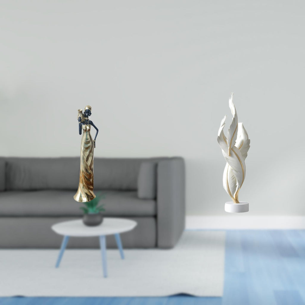 African Tribal Feather Lady Statue Modern Resin Figurine Lightweight Decorative Sculpture Art Crafts Home Decor for Hotels Fireplace Office Cabinet