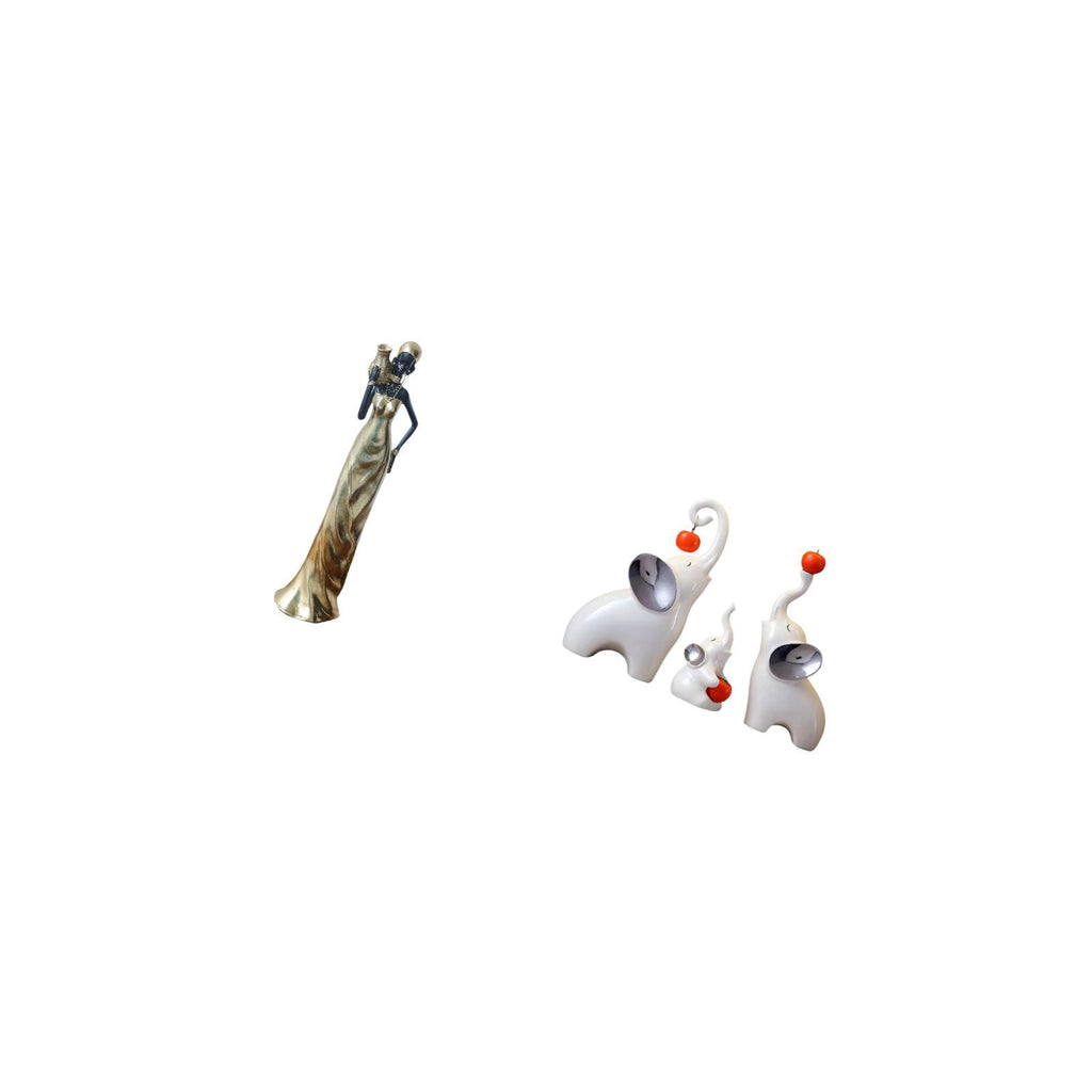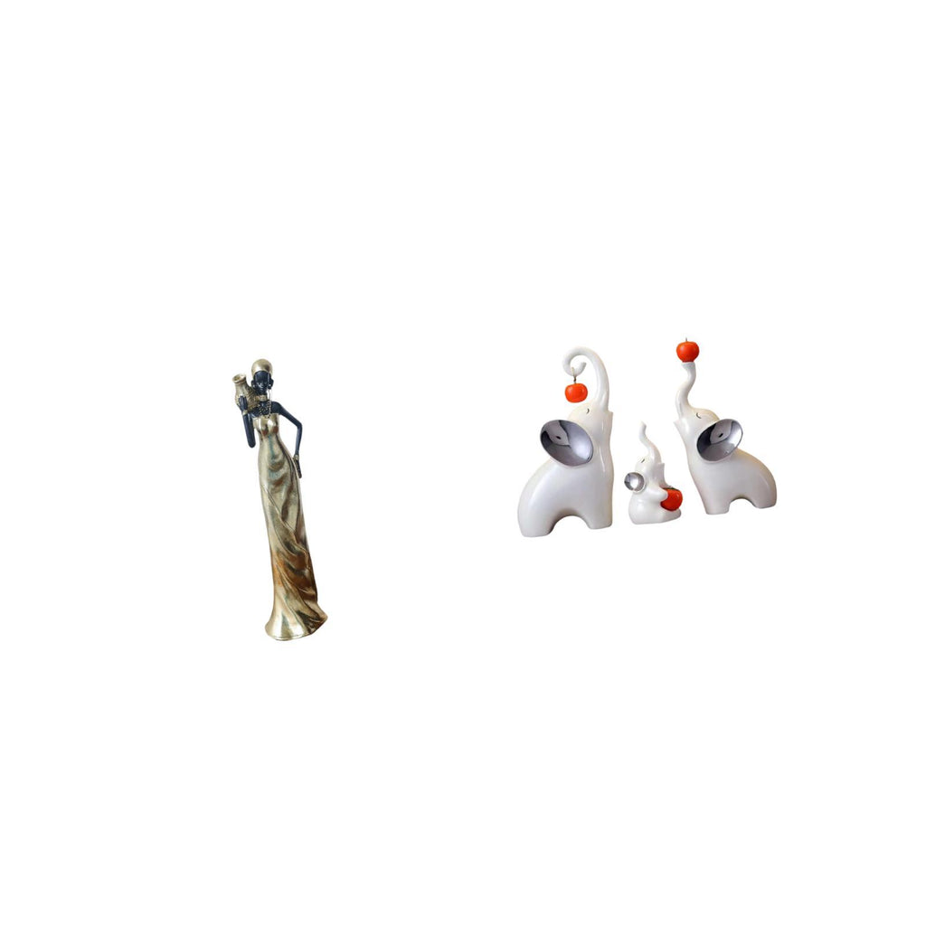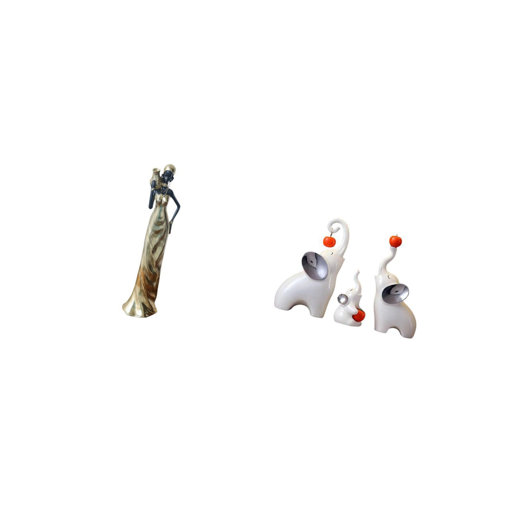 1 African Tribal Lady Statue Resin Ornament 3 Elephant figurines