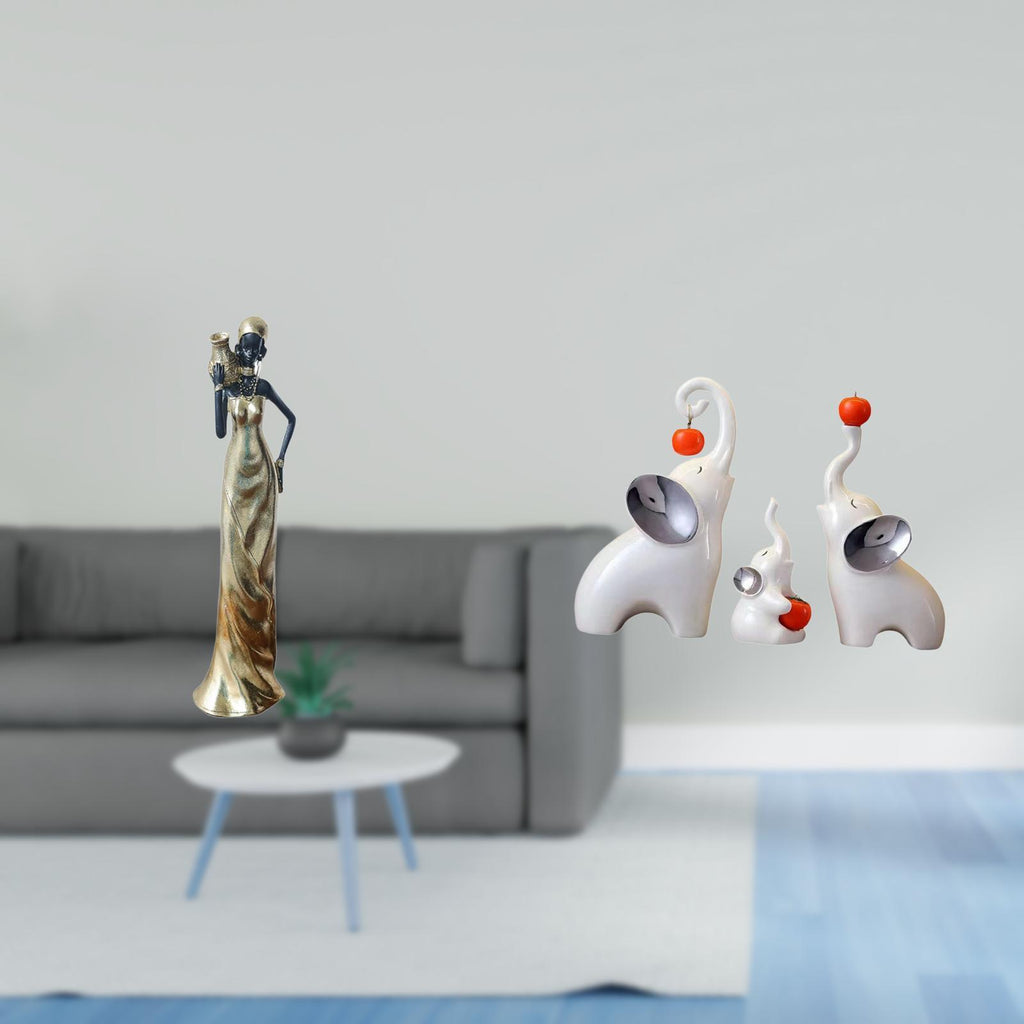 African Tribal Lady and Elephant Family Figurines Sculpture Set Lightweight Decorative Statues for Home Hotel Desk Living Room Bedroom Decor