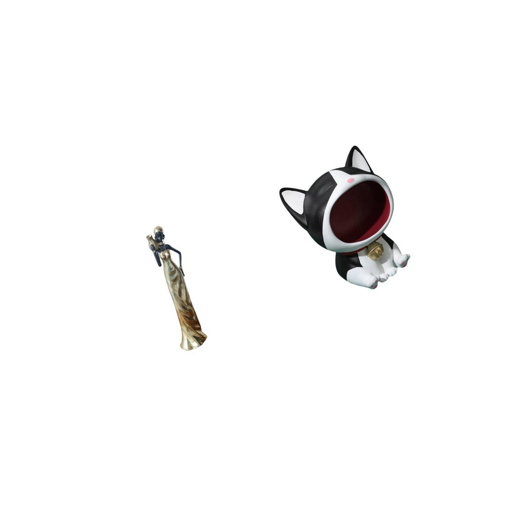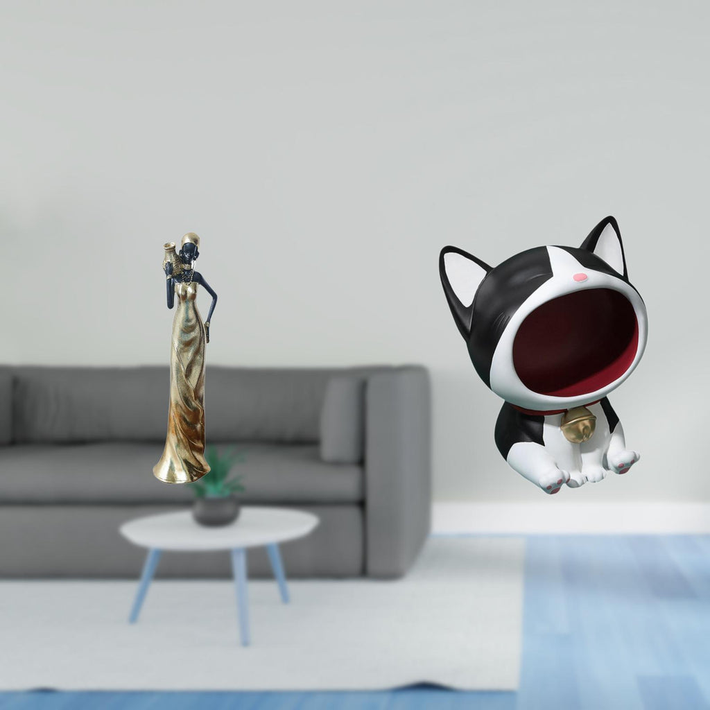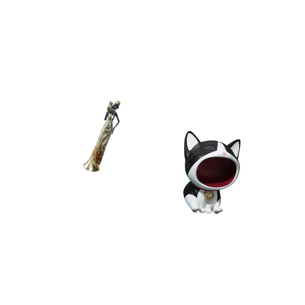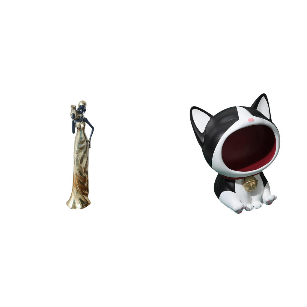 1 African Tribal Lady Statue Resin Ornament 1 Cat Statue Key Bowl