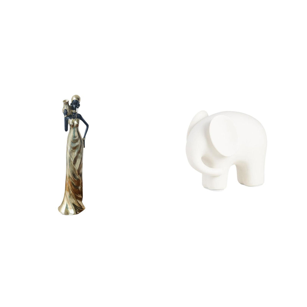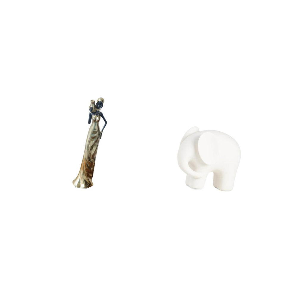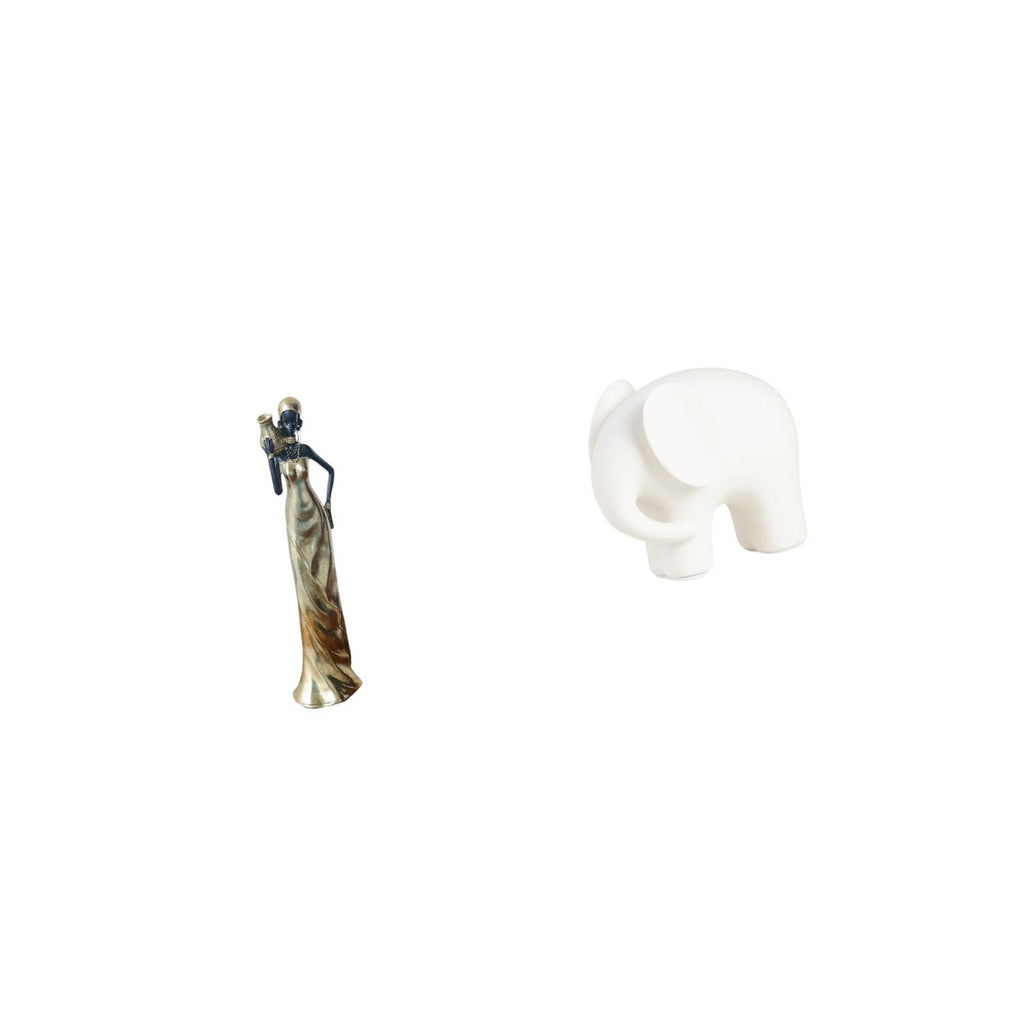 1 African Tribal Lady Statue Resin Ornament 1 Elephant Statue