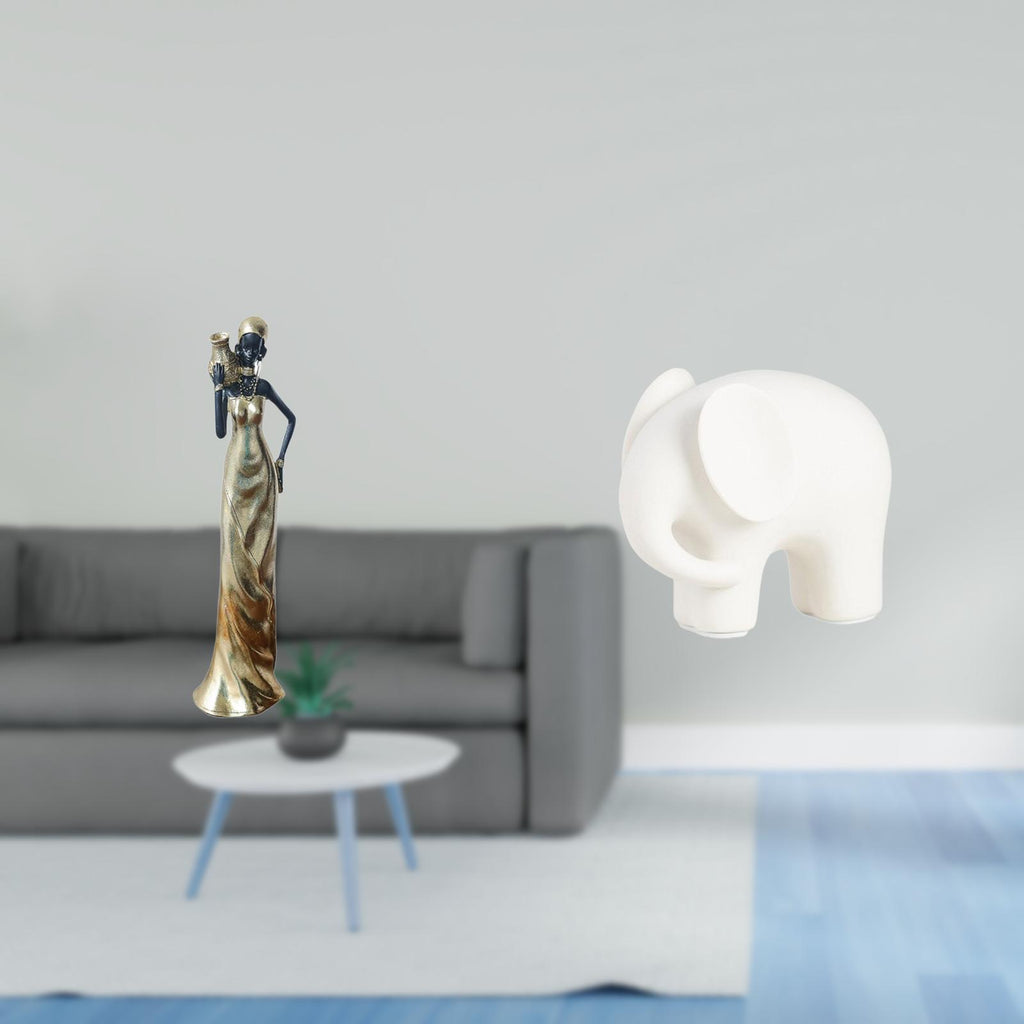 African Tribal Lady Ceramic Elephant Statue Figurine Sculpture Lightweight Decorative Home Decor for Hotels Bookshelf Tabletop Collectible