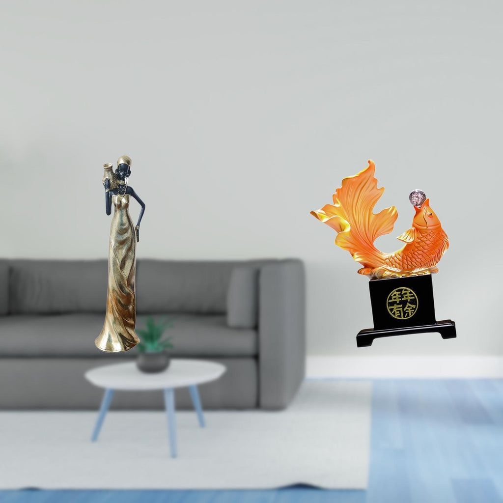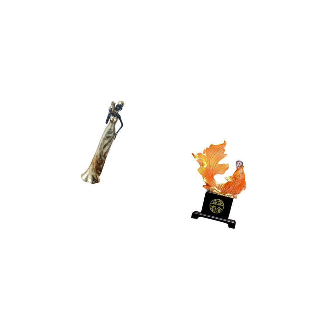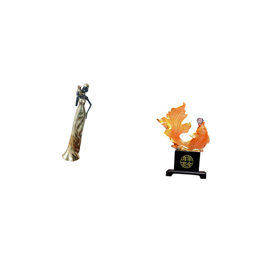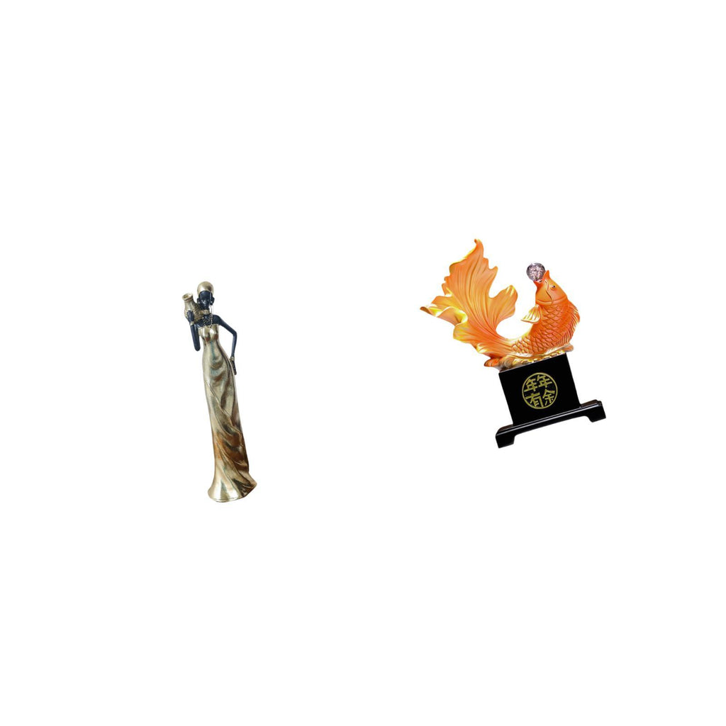 1 African Tribal Lady Statue Resin Ornament 1 Fish Sculpture