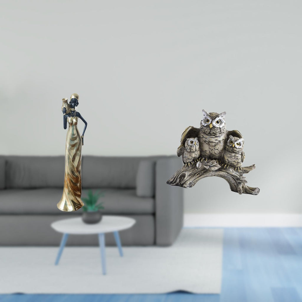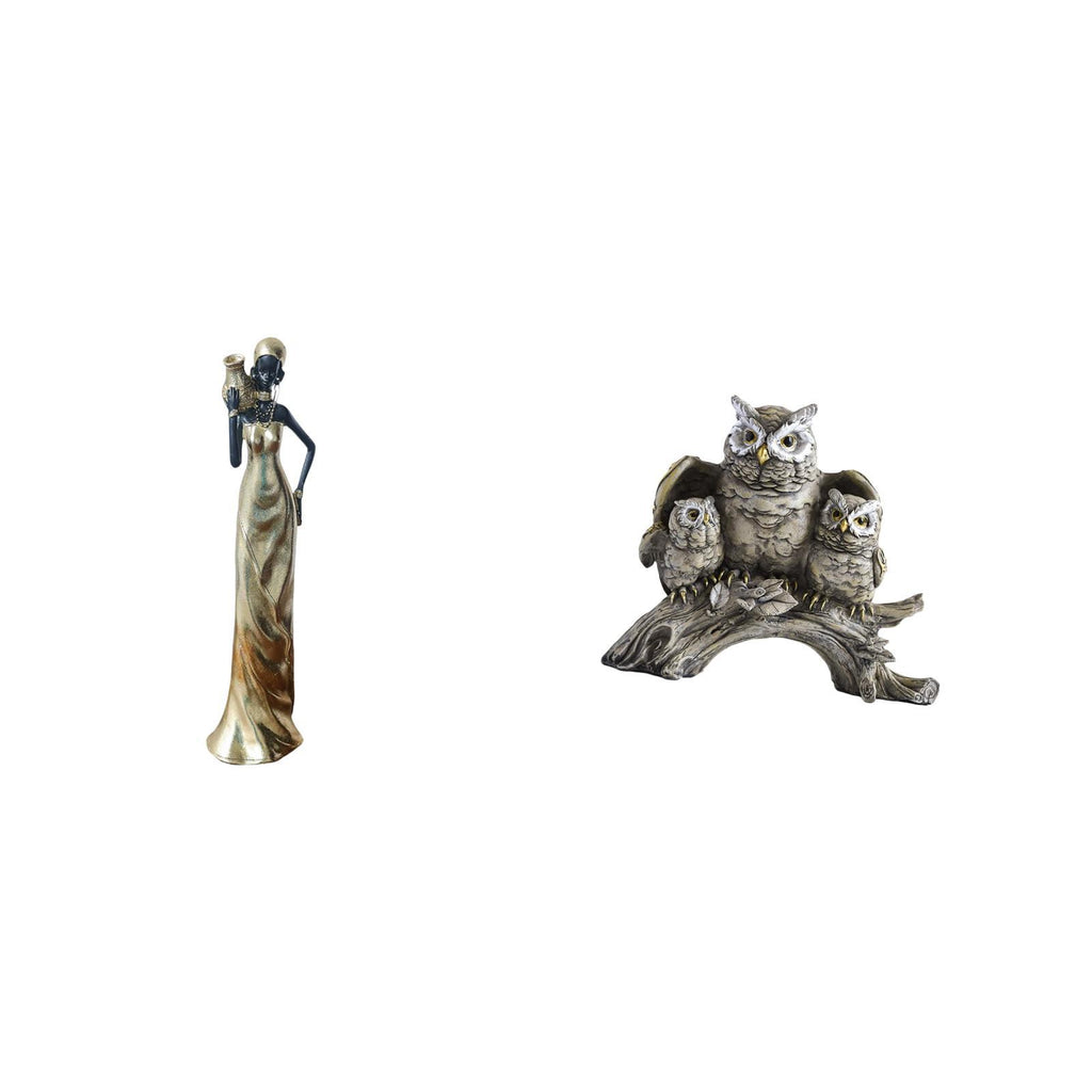 1 African Tribal Lady Statue Resin Ornament 1 Owl Statue