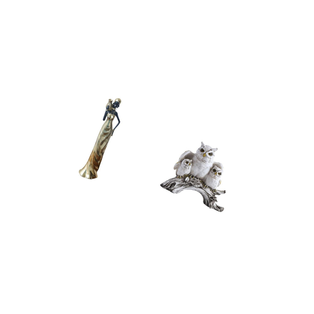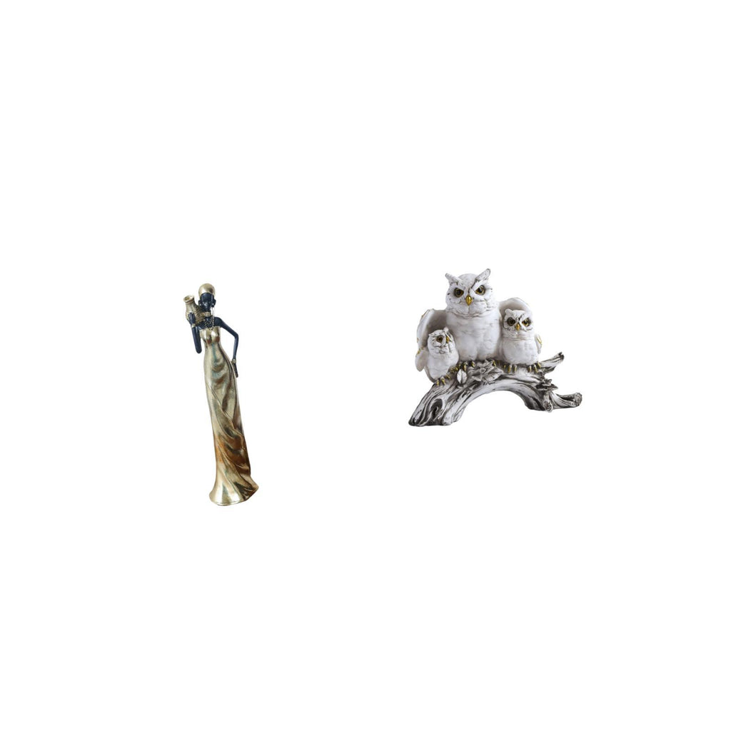 1 African Tribal Lady Statue Resin Ornament 1 Owl Statue