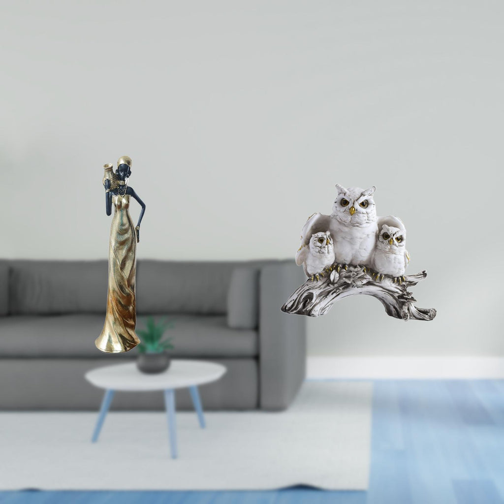 African Tribal Lady Owl Figurine Sculpture Modern Lightweight Decorative Statue for Home Hotels Living Room Office Cabinet NightStand Decor