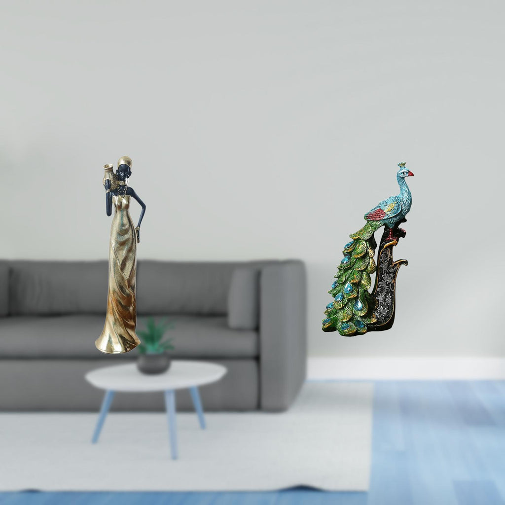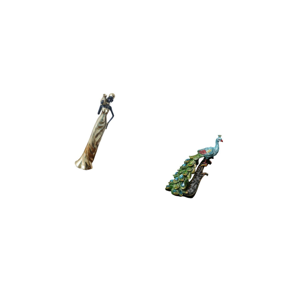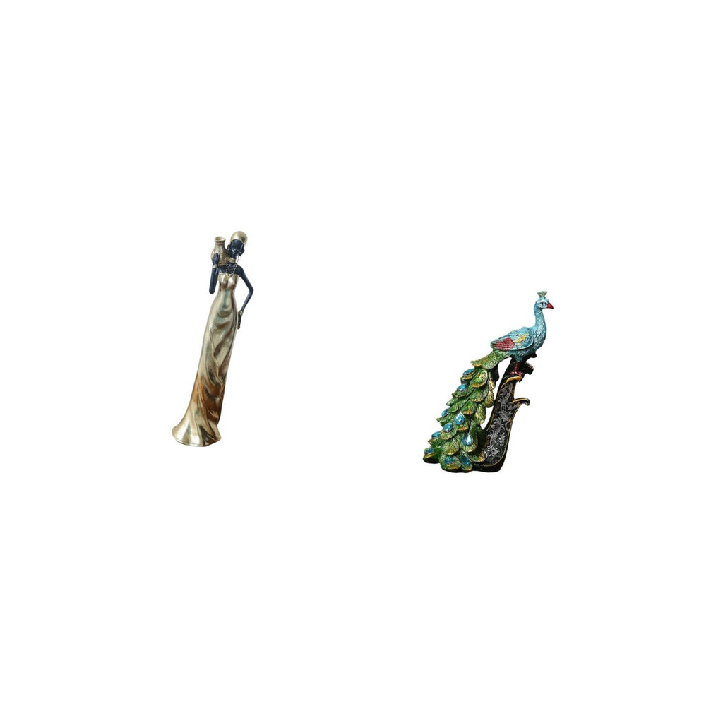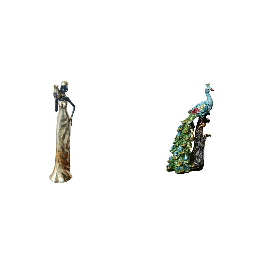 1 African Tribal Lady Statue Resin Ornament 1 Peacock Statue
