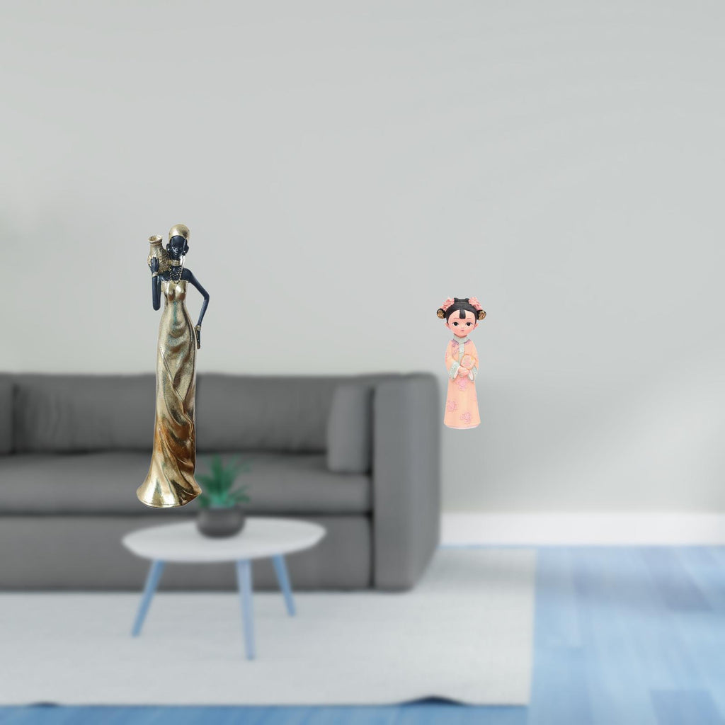 1 African Tribal Lady Statue Resin Ornament 1 Traditional Chinese Girl Statue