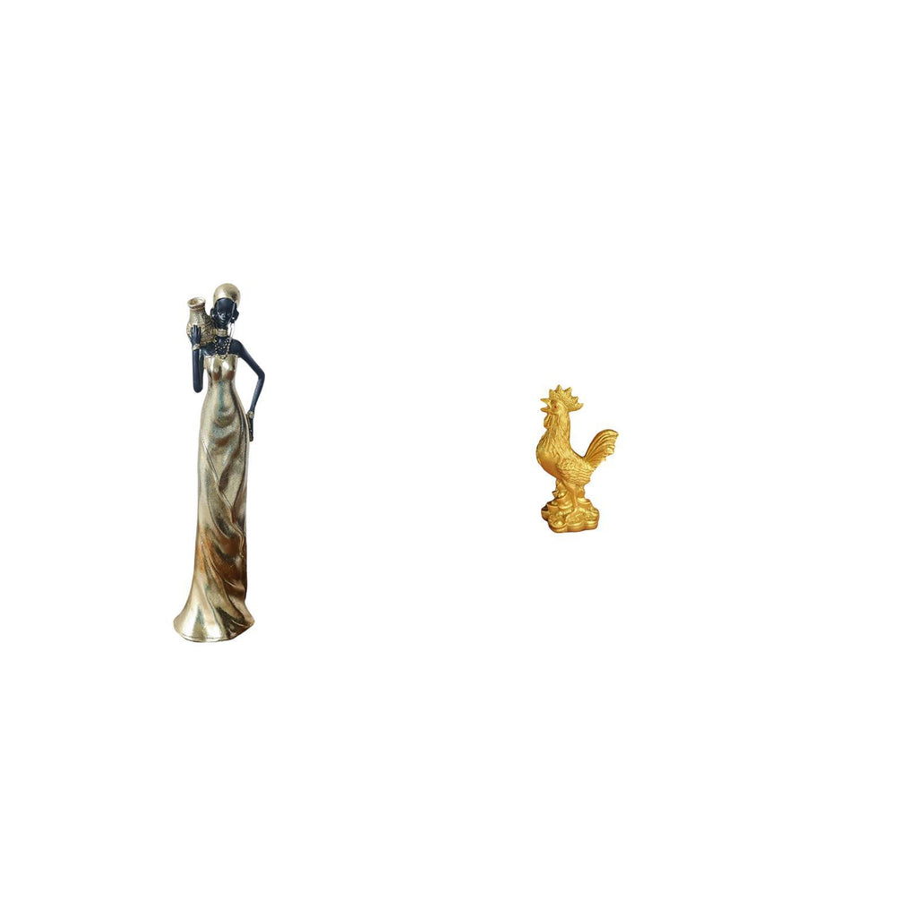 African Tribal Lady Sculpture and Rooster Statue Figurine Lightweight Decorative Home Decor for Hotels Birthday Anniversaries Housewarming
