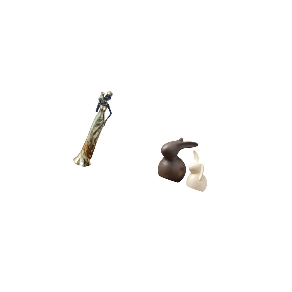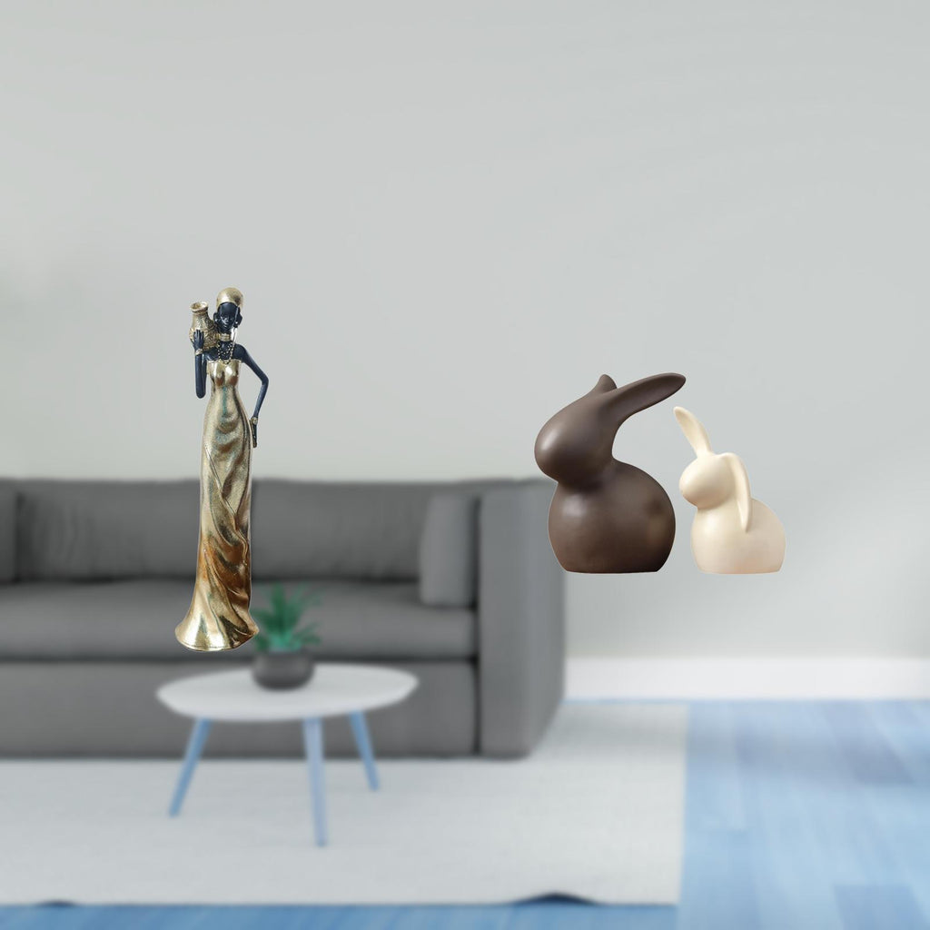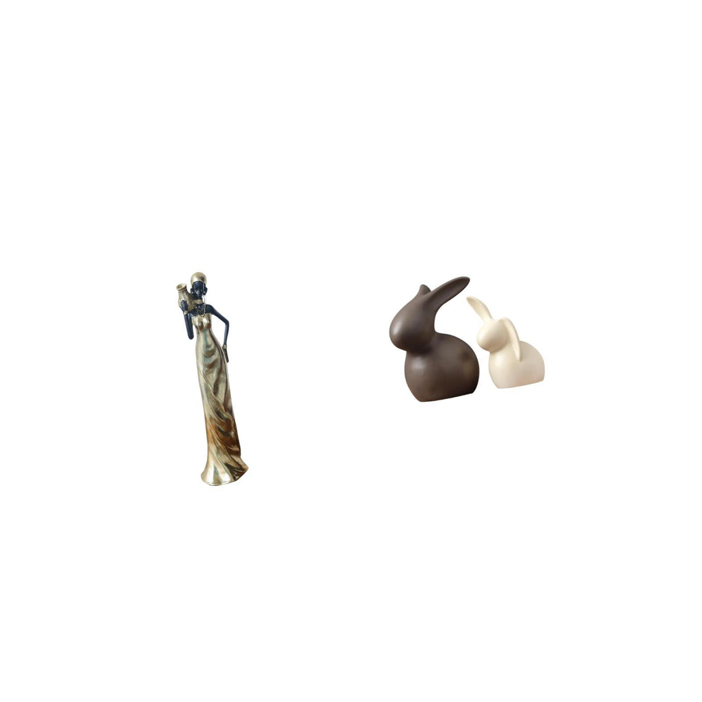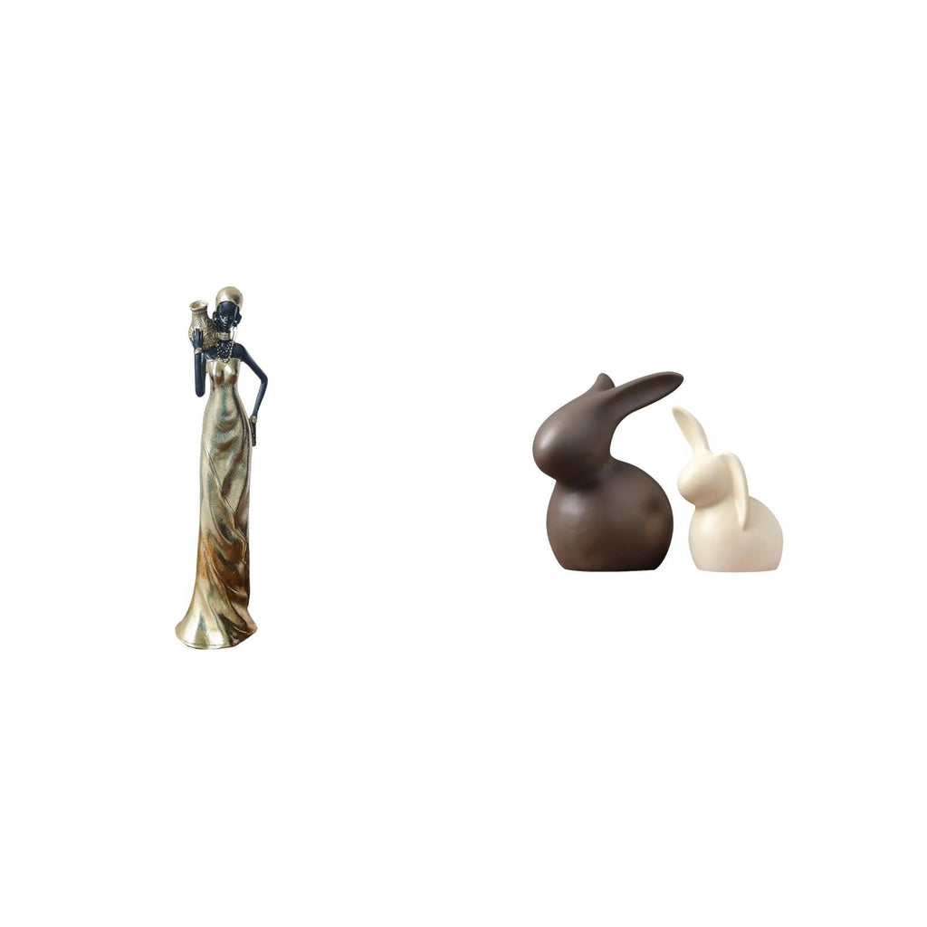 African Tribal Lady Sculpture Figurine Lightweight Home Decor with Ceramic Bunny Statue Set Porcelain Easter Decoration for Hotels Cabinet Garden