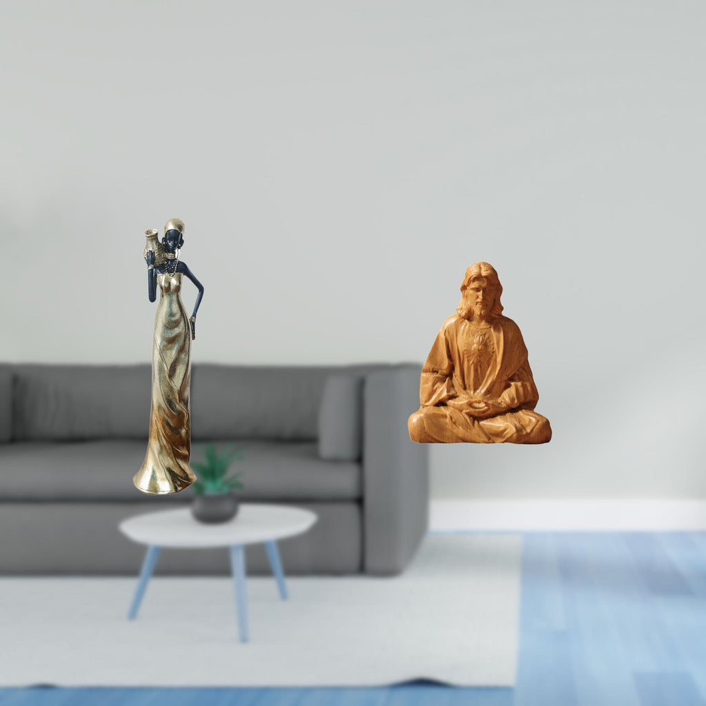 African Tribal Lady Sculpture Figurine Sacred Heart Jesus Statue Lightweight Decorative Collectible Home Decor for Hotels Hallway Bedroom Office Desk