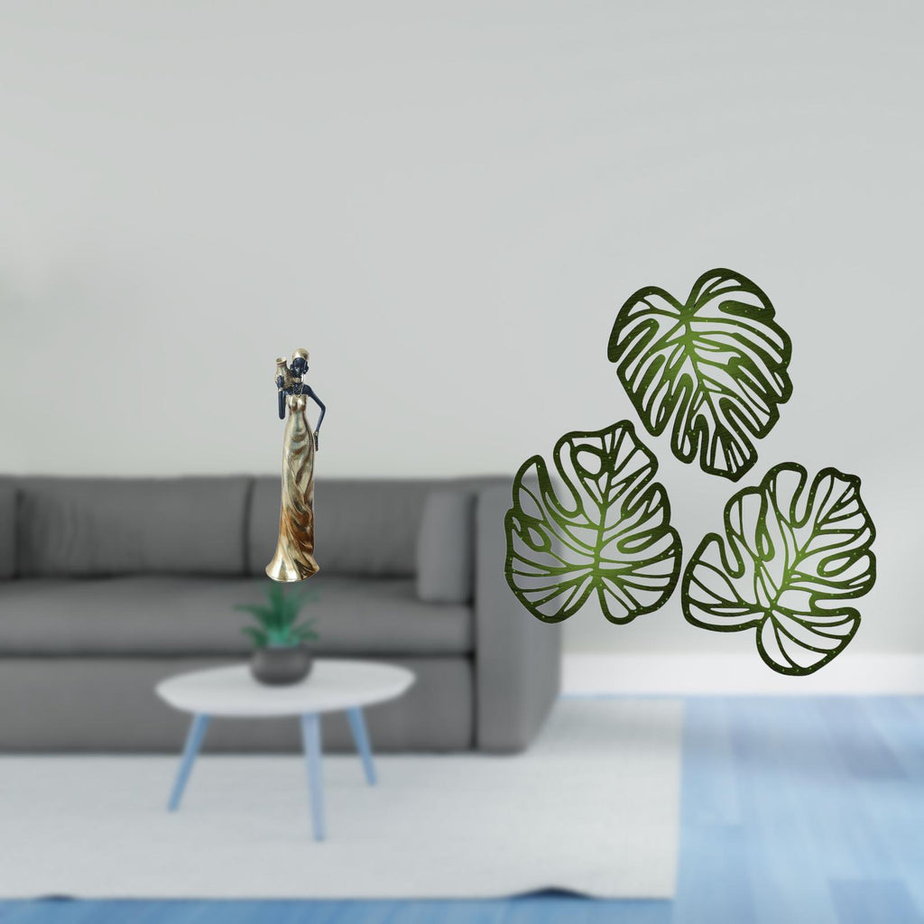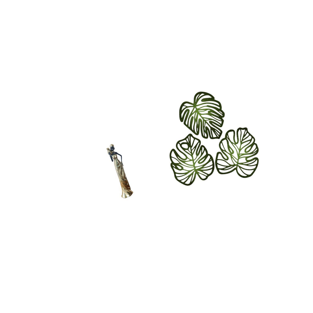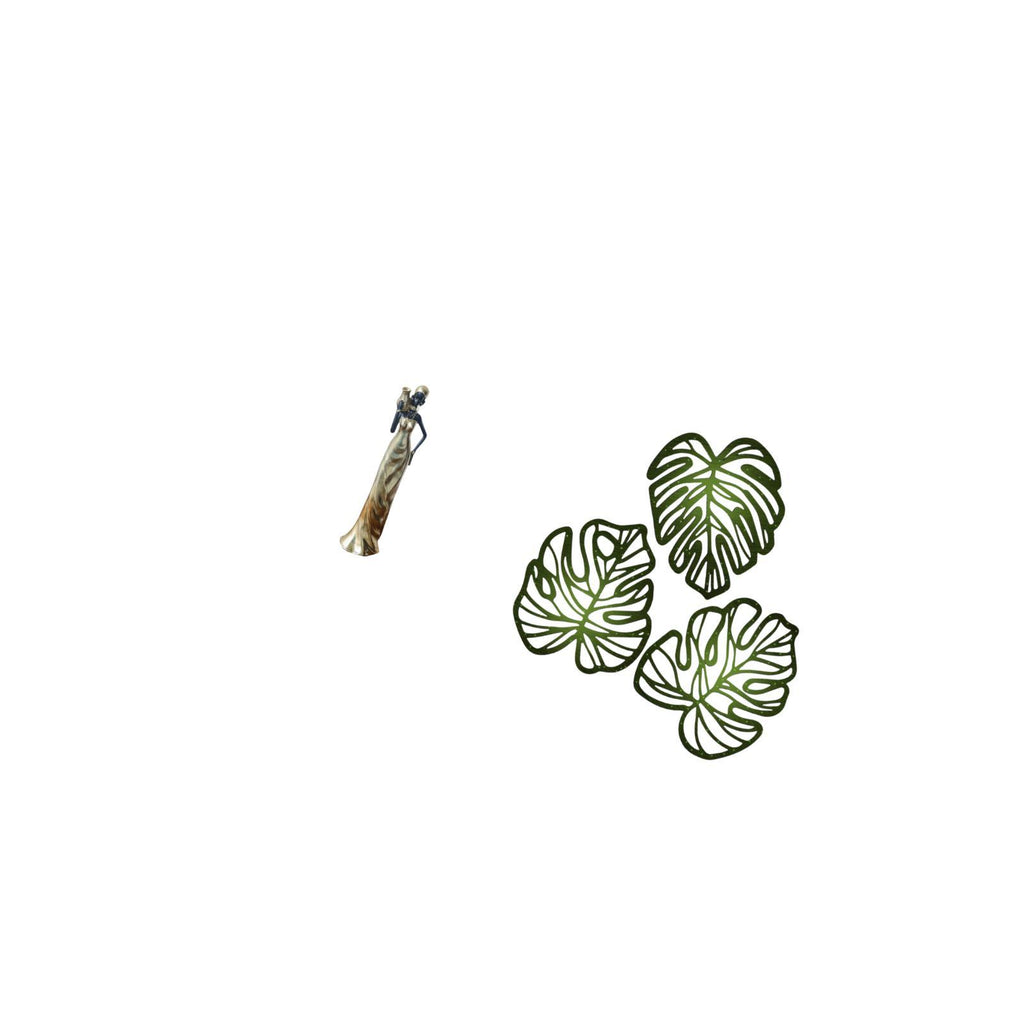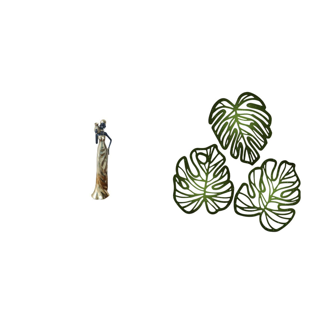 1 African Tribal Lady Statue Resin Ornament 3 Palm Leaves Wood Wall Decor