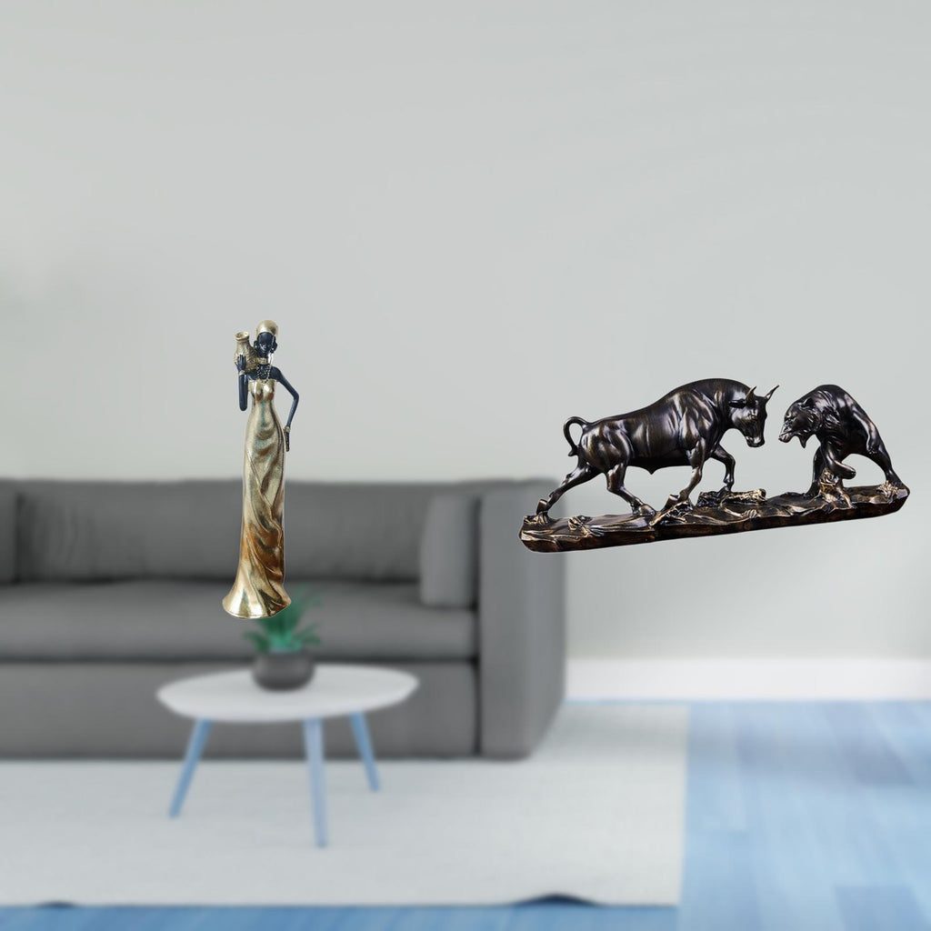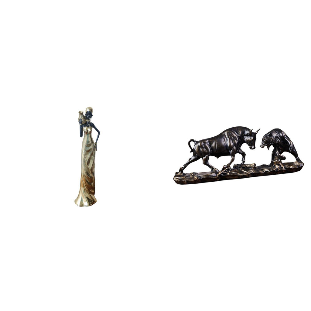 African Tribal Lady Sculpture Modern Bull Figurine Feng Shui Bear Cow Cattle Statue Lightweight Decorative Artwork for Home Hotels Desk Birthdays Gifts