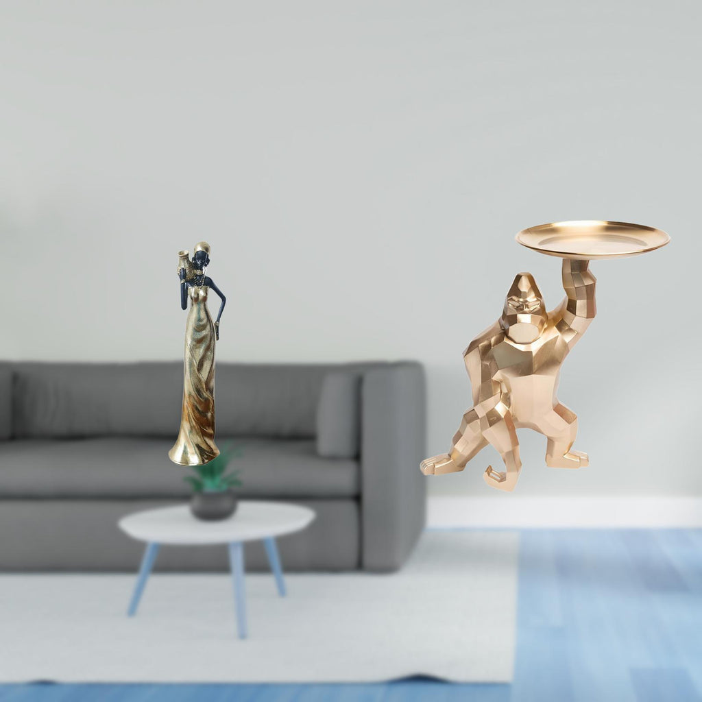African Tribal Lady Sculpture with Serving Tray Resin Figurine Lightweight Decorative Ornament for Home Hotels Porch Living Room Bookshelf