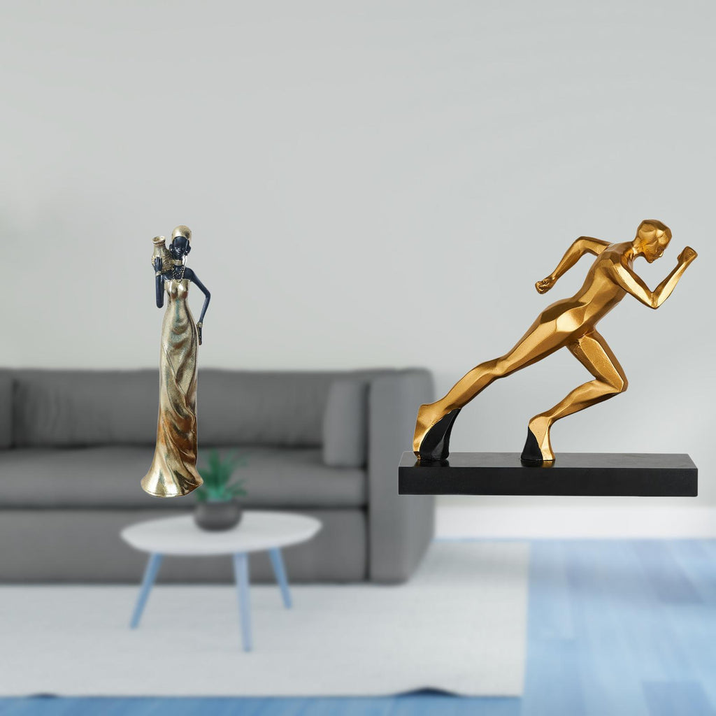 African Tribal Runner Lady Figurine Modern Abstract Sculpture Lightweight Decorative Home Decor for Hotels and Entryway Tabletop