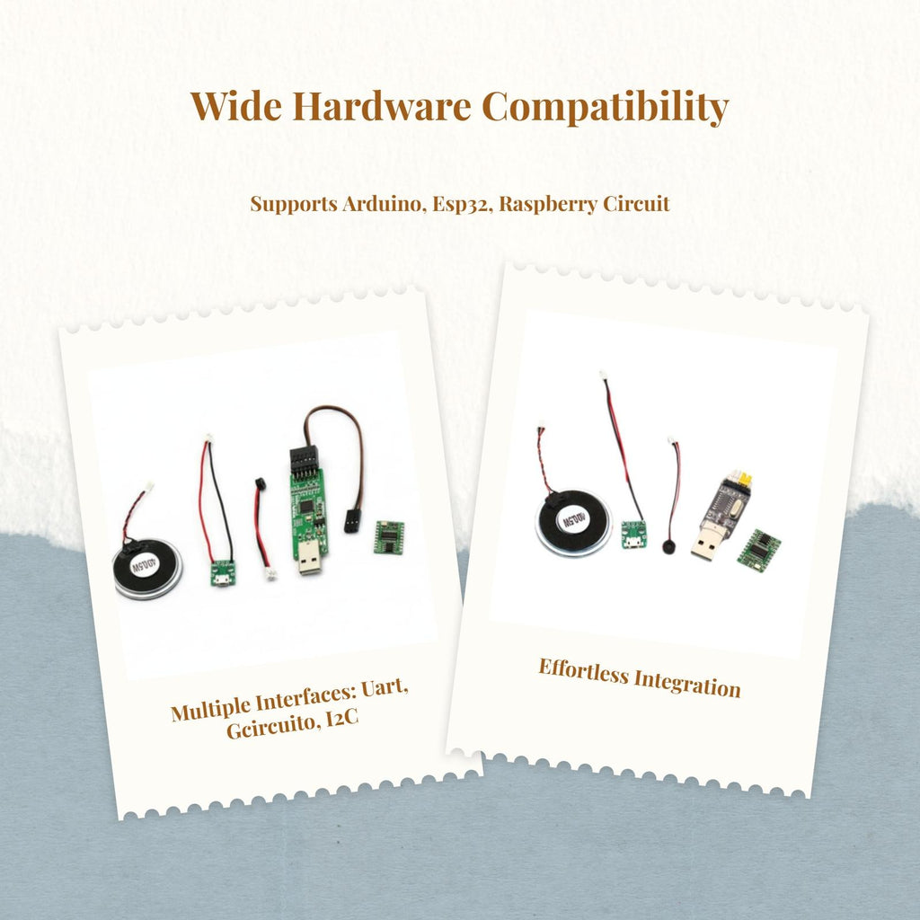 【Sophisticated AI Voice Recognition Module for Smart Home and DIY Projects】This sophisticated AI voice recognition module offers standalone speech control with high accuracy and stable performance, making it perfect for smart home devices, DIY electronics, and programmable robot projects.【High-Quality and dependable Performance】Featuring the SU-03T recognition chip, this module delivers precise command recognition and supports personalized wake words for versatile applications.【Versatile and Practical Applications】Perfect for use in smart homes, lighting systems, toys, lamps, and robotics, this module supports UART, I2C, and other interfaces for easy integration.【Cost-Effective and Efficient】With low power consumption and efficient operating current, this voice control module is suitable for long-term use in a wide range of electronic projects.【Easy Integration and Flexible Development】Compatible with Arduino, ESP32, Raspberry circuit, and other development boards, this module is perfect for IoT, wearable devices, and electronic components.Specification: