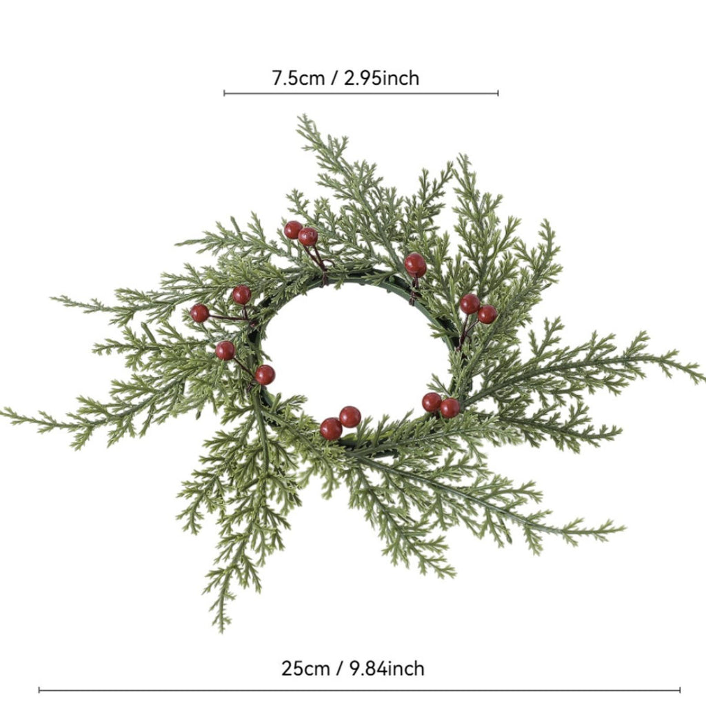 Maxbell Artificial Cedar and Berry Candle Ring Lightweight Versatile Inner Dia 7.5cm