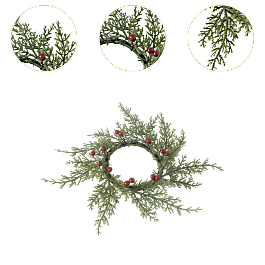 【Material】The Artificial Cedar and Berry Candle Ring is made of pp material, sturdy and lightweight. You can decorate your wreaths everywhere to create a natural atmosphere